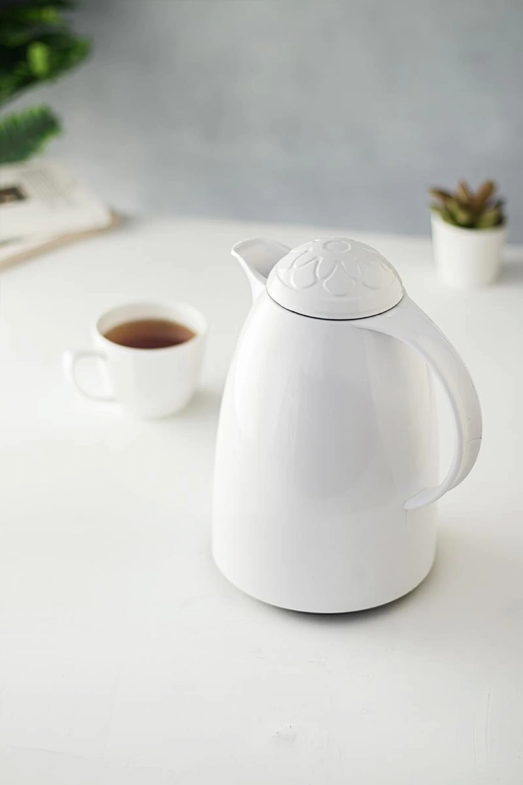 • 1 LT Isı Yalıtımlı Çay Ve Soğuk Su Termosu Soft Beyaz (12 Saat Sıcak Tutar& İçi Camdır)
