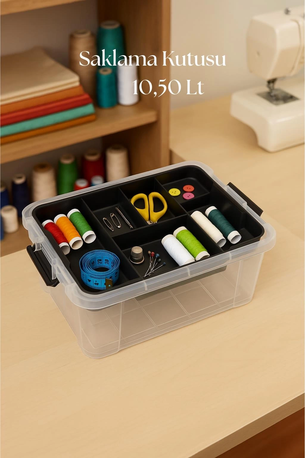 Ürün Hikayesi: 10,5 litrelik yüksek kapasiteli kutu, evinizin her alanında düzen sağlar. Hobi malzemelerinden tekstil ürünlerine kadar geniş bir kullanım alanı sunar.