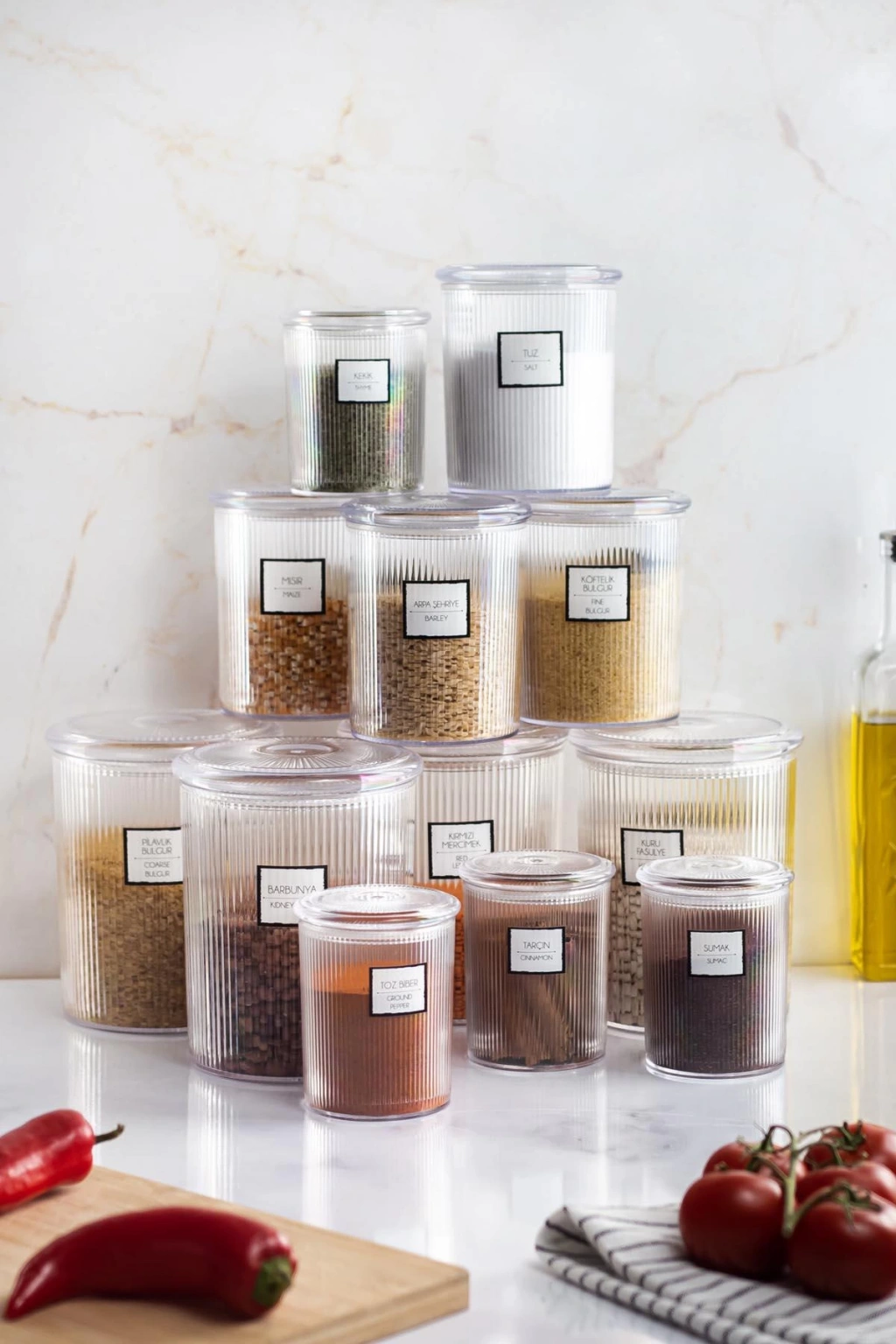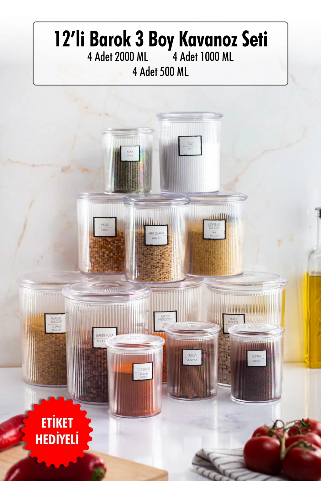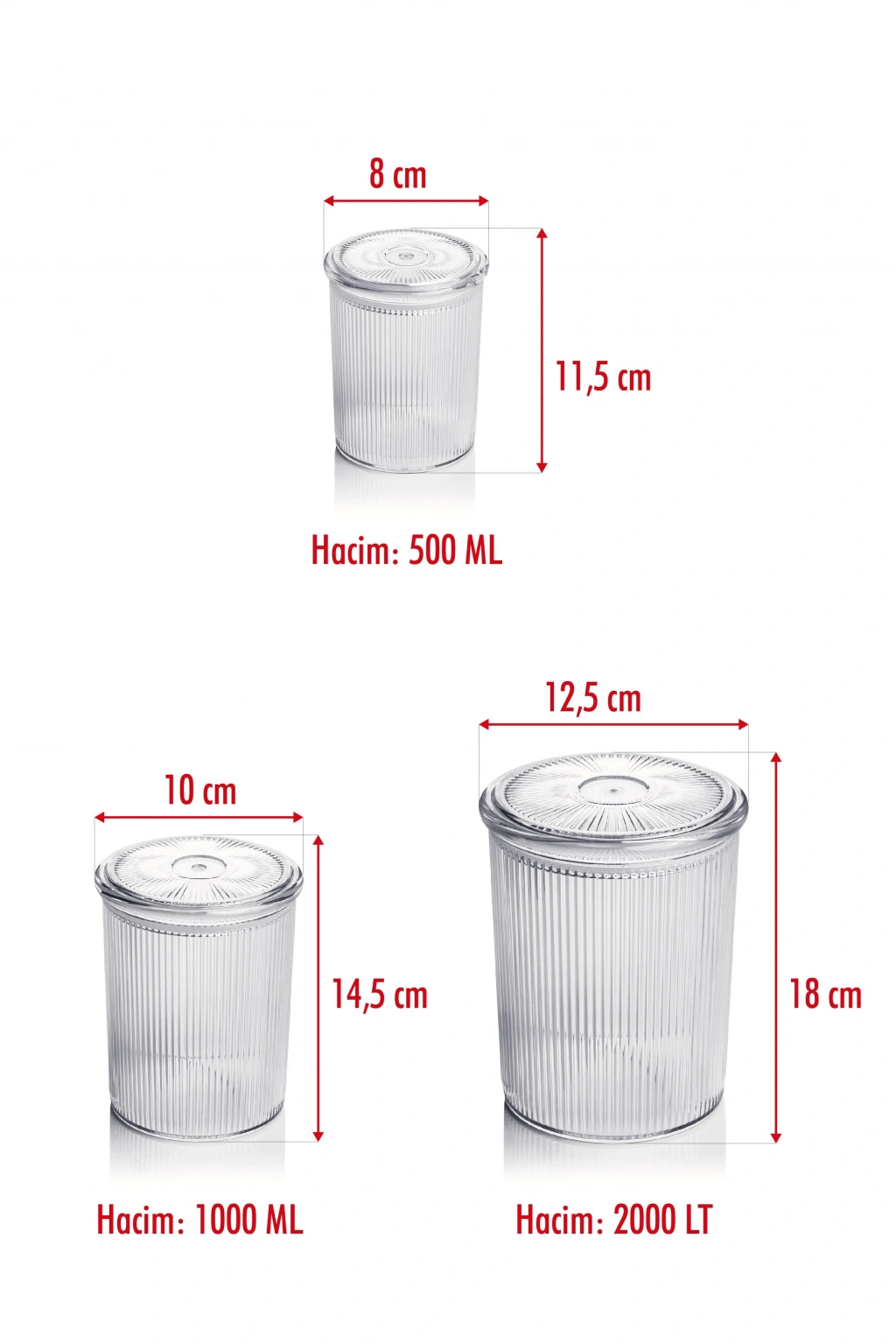 Erzak veya depolamak istediğiniz her ürünü saklamak için 4'lü 3 farklı boydan oluşan estetik akrilik kavanoz seti depolama yapmak için en ideal tercihiniz olacak.
