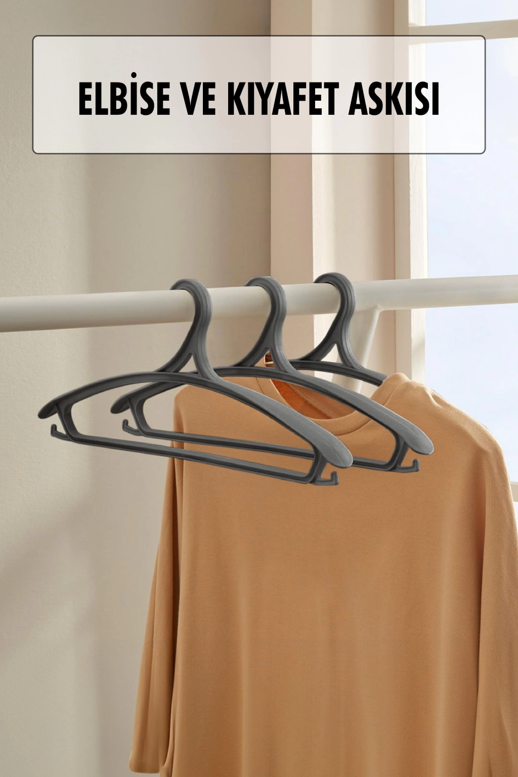 • 3 Lü Geniş Kıyafet Ve Elbise Askısı Füme 43 Cm
