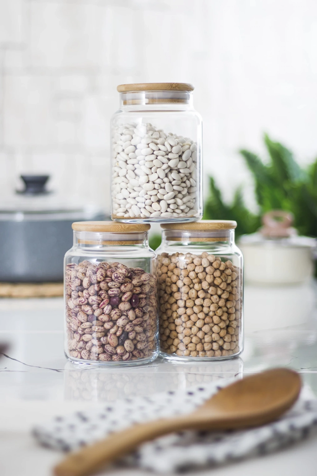 • 3 Lü Set Bambu Kapaklı Cam Kavanoz & Erzak Saklama Kabı 800 ml Orta Boy ( Vakum Kapak )