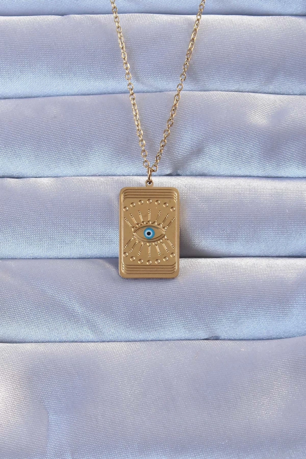 • 316L Altın Renk İşlemeli Nazarlı Göz Model Vintage Kolye