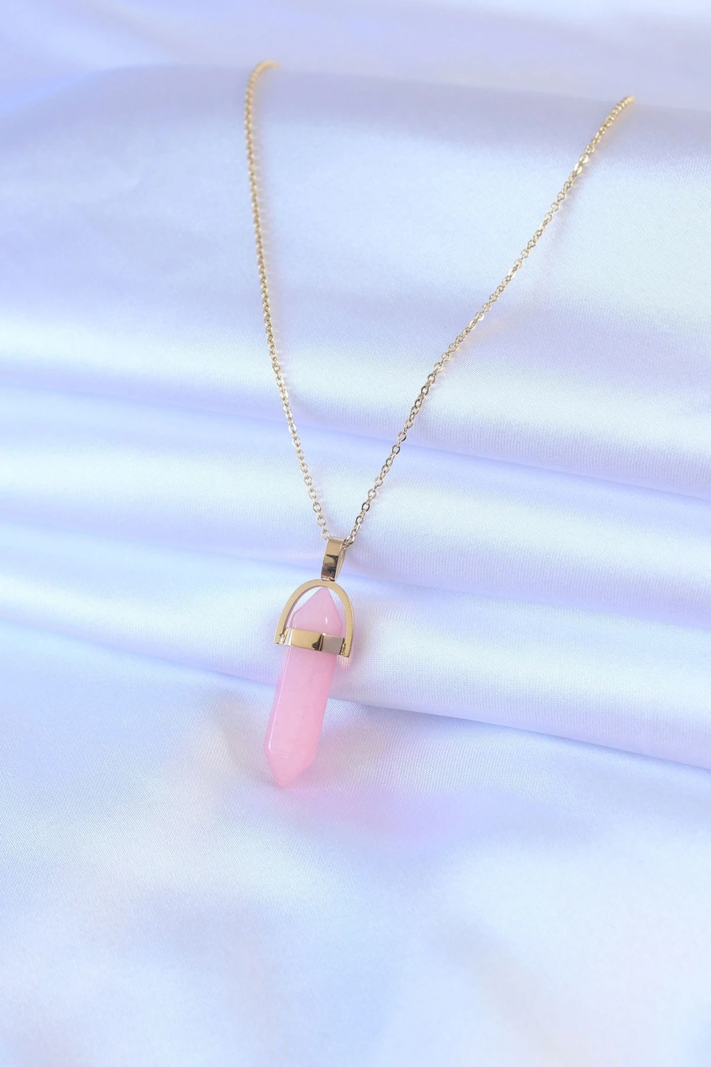 • 316L Çelik Gold Renk Kristal Pembe Taş Model Kadın kolye