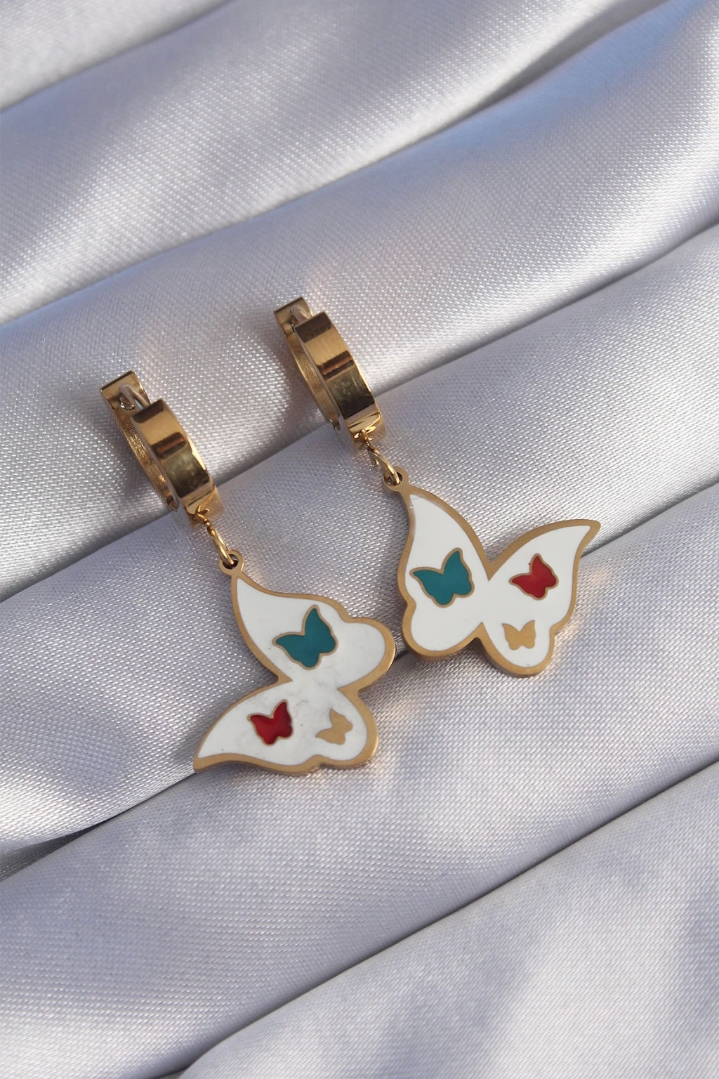 • 316L Çelik Gold Renk Renkli Mineli Kelebek Küpe