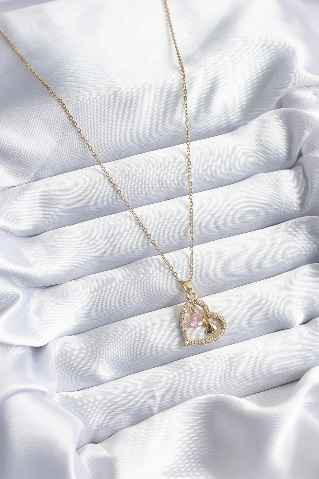 • 316L Çelik Gold Renk Zincir Zirkon Taşlı Kalp Model Kadın Kolye