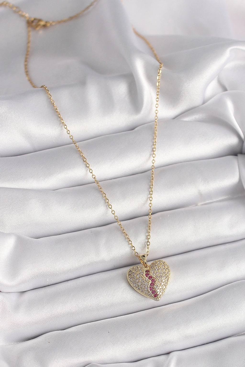 • 316L Çelik Gold Renk Zincir Zirkon Taşlı Kalp Model Kadın Kolye