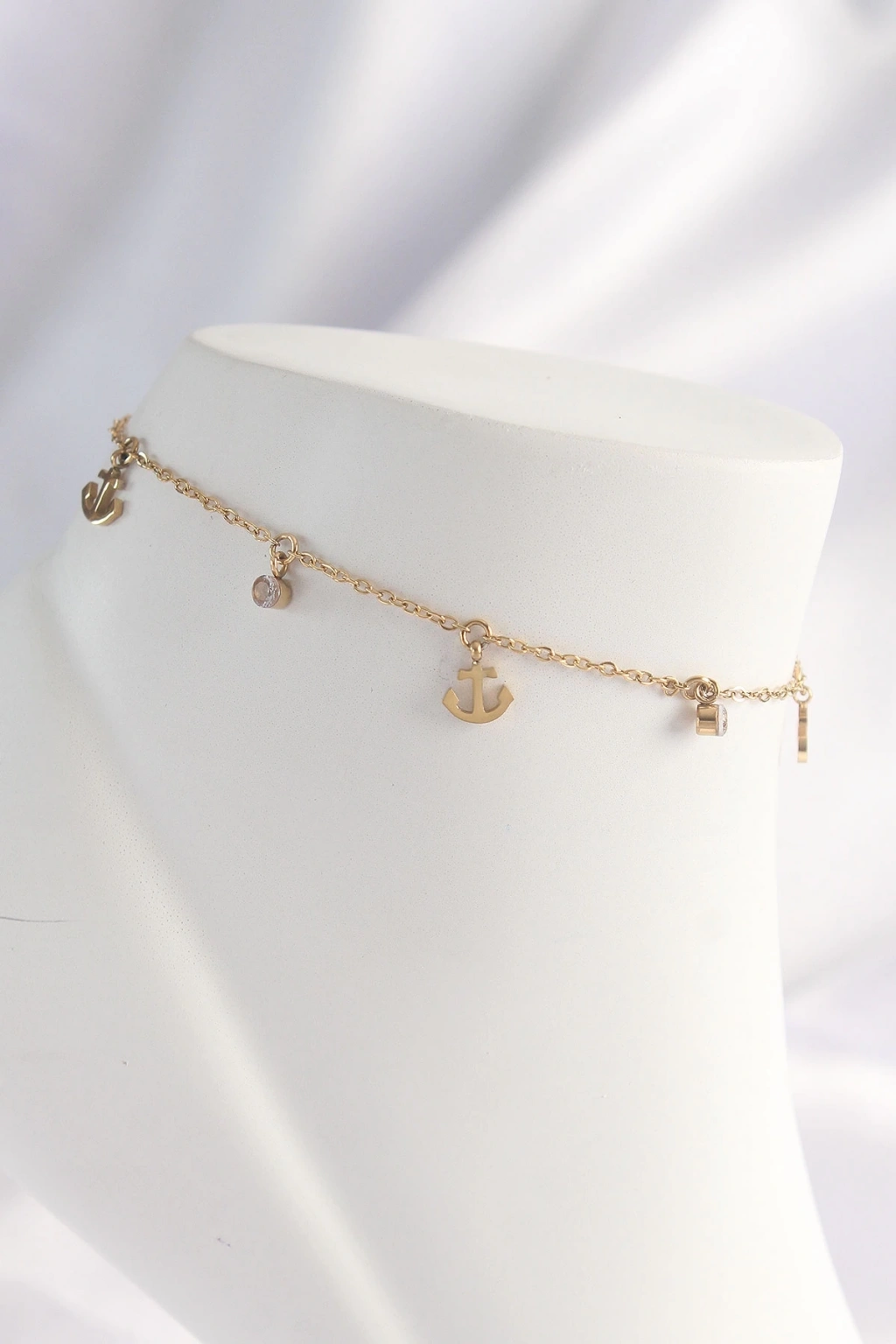 • 316L Çelik Gold Renk Zirkon Taşlı Minimal Çapa Tasarımlı Halhal