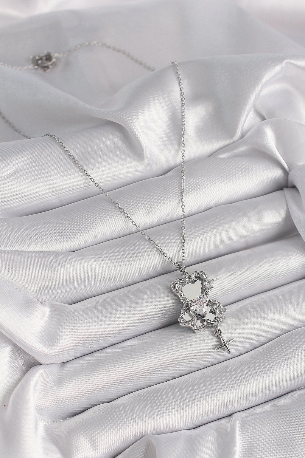 • 316L Çelik Gümüş Renk Ayna Ayıcık Model Zirkon Taşlı Kalp Detay Kadın Kolye