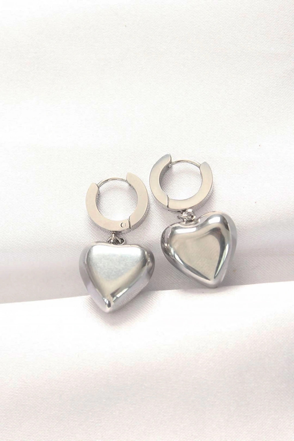 • 316L Çelik Gümüş Renk Bombeli Kalp Tasarımlı Küpe