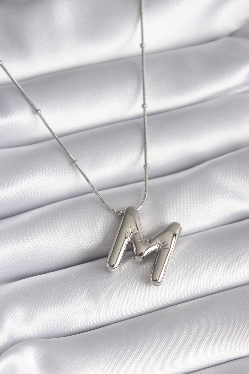 • 316L Çelik Gümüş Renk Bubble "M" Harf Model Kadın Kolye