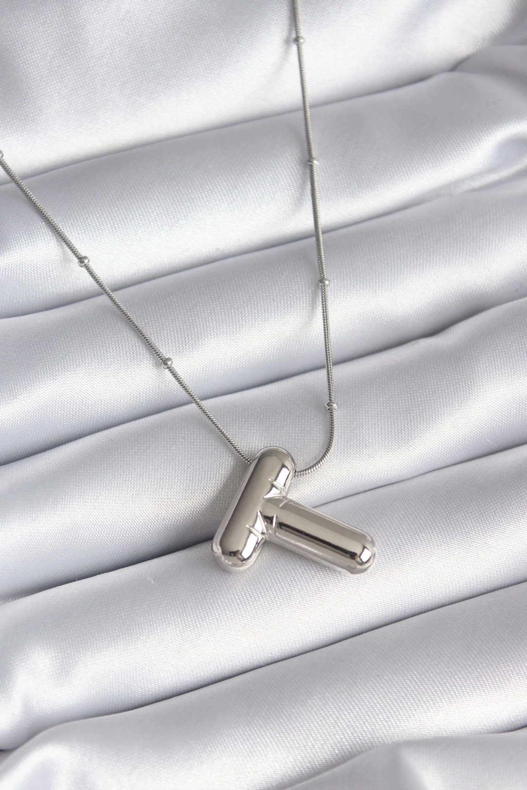 • 316L Çelik Gümüş Renk Bubble "T" Harf Model Kadın Kolye