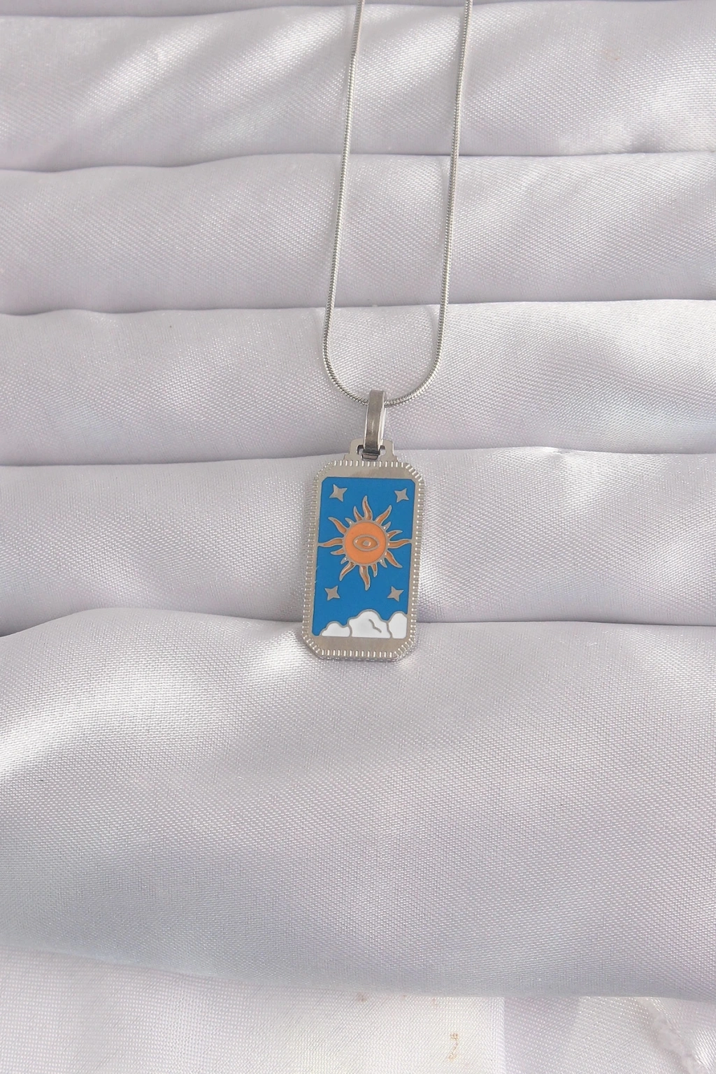 • 316L Çelik Gümüş Renk Mavi Mineli Güneş Model Tarot Kolye