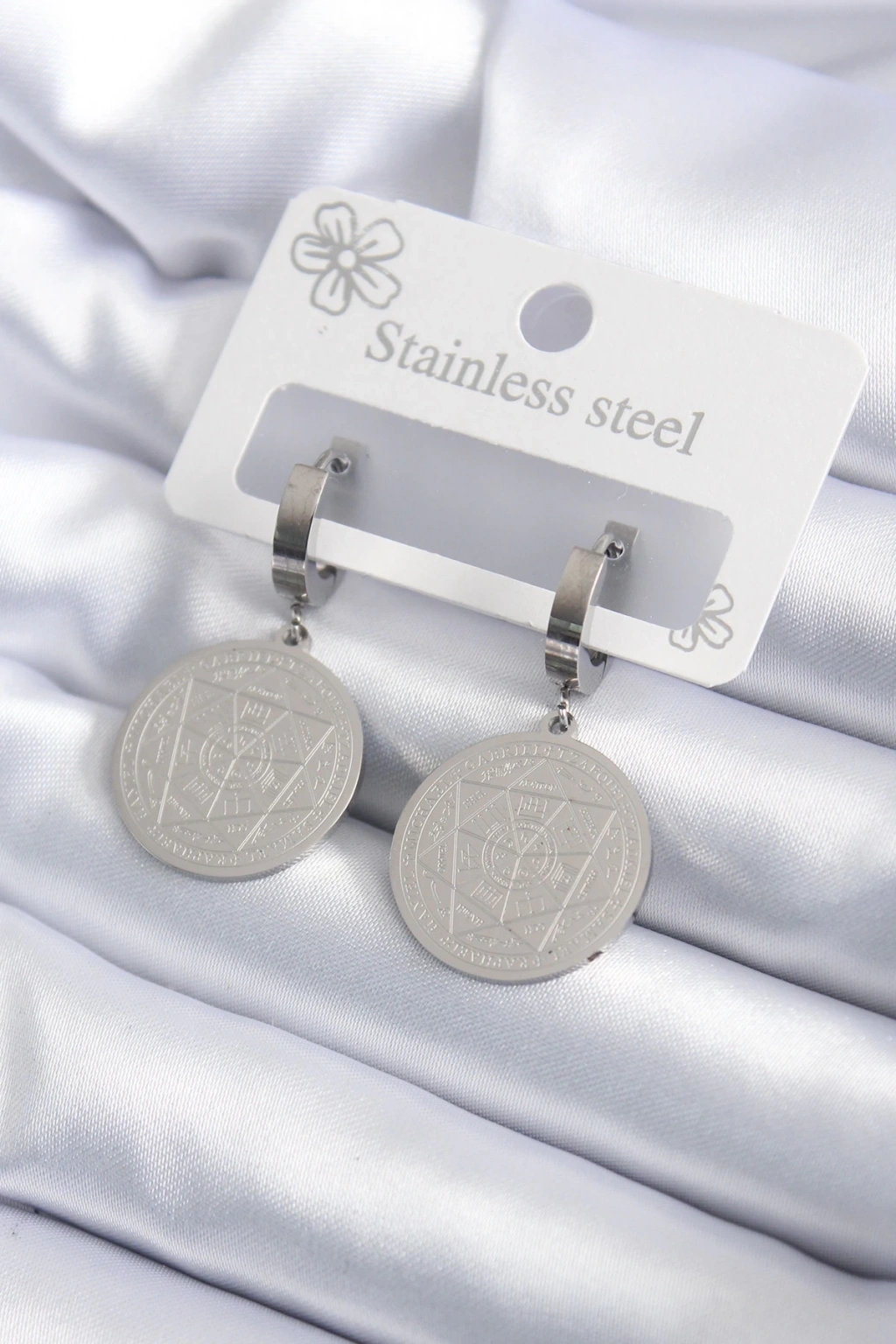 • 316L Çelik Gümüş Renk Pentagram İşleme Model Kadın Küpe