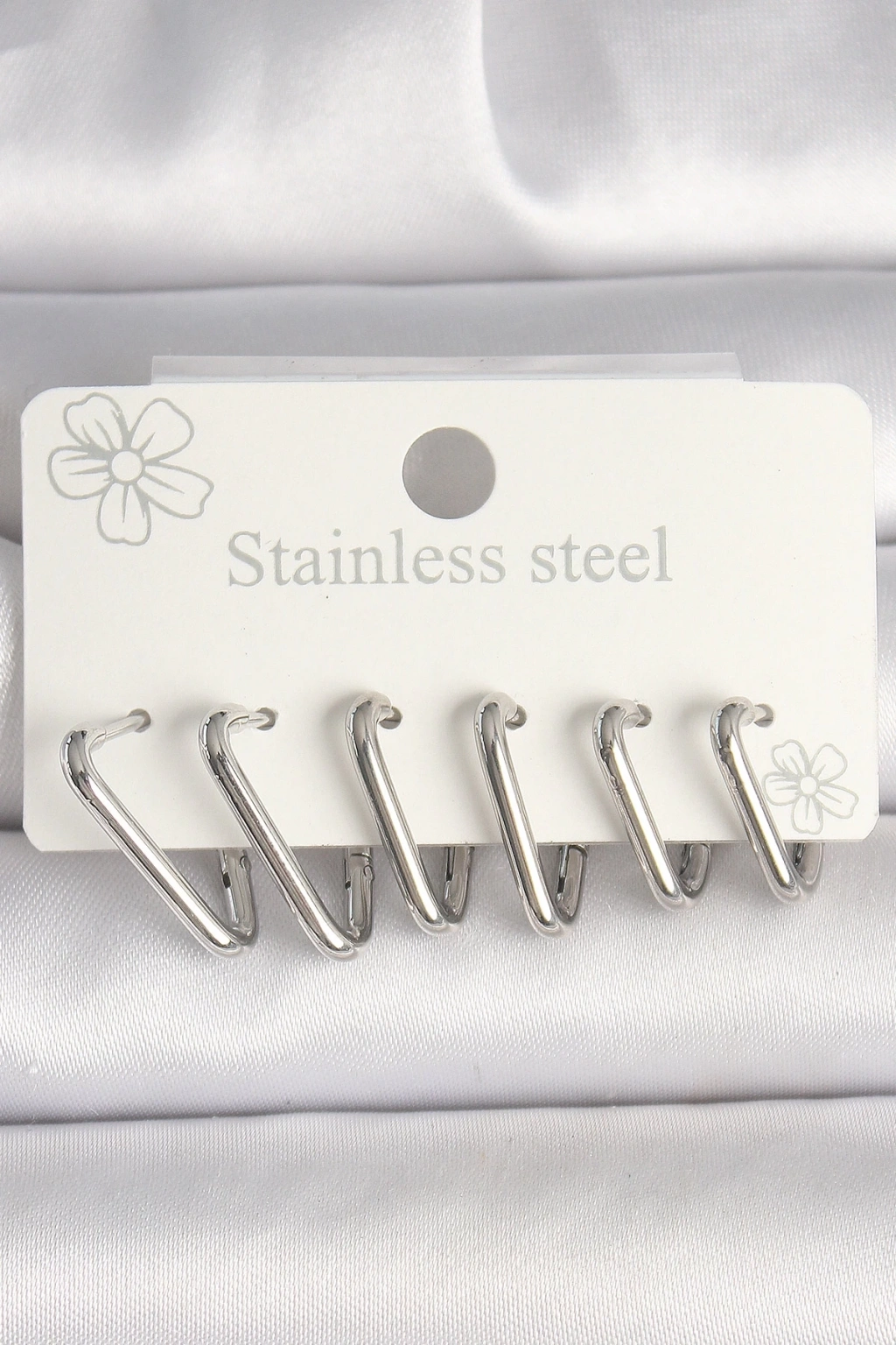 • 316L Çelik Gümüş Renk Üçgen Model Kadın Küpe Seti