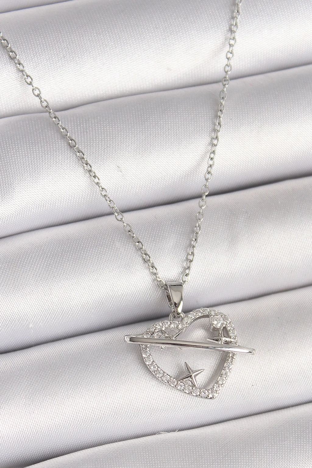 • 316L Çelik Gümüş Renk Zincir Zirkon Taşlı Kalp Model Yıldız Detay Kadın Kolye