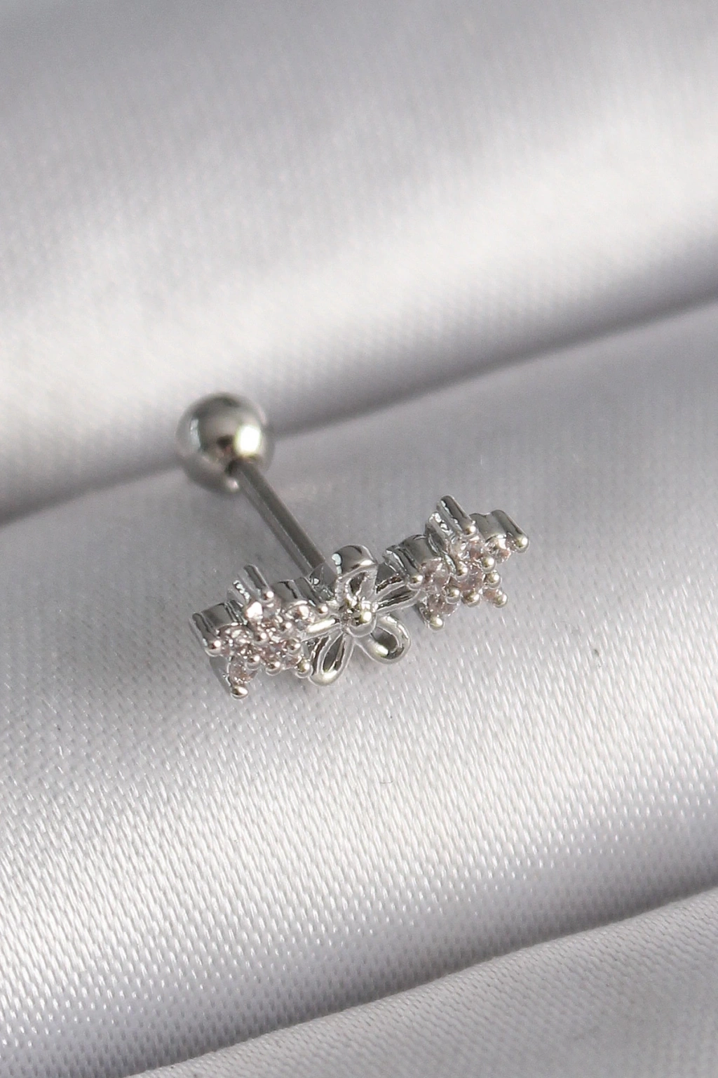 • 316L Çelik Gümüş Renk Zirkon Taşlı Çiçek Tragus Piercing