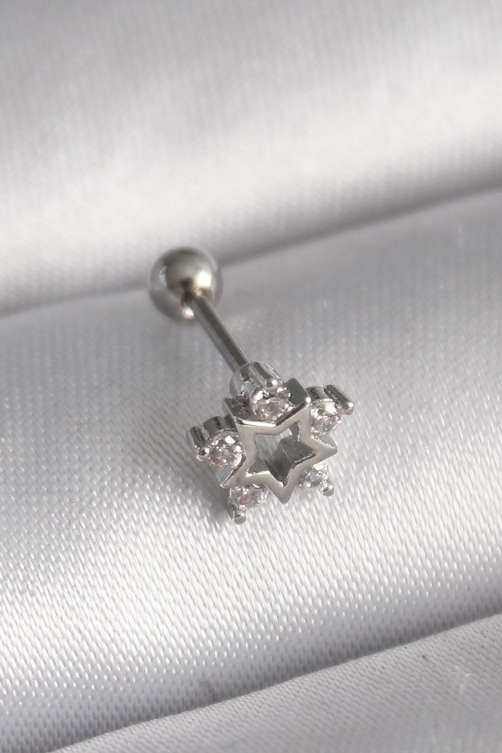 • 316L Çelik Gümüş Renk Zirkon Taşlı Yıldız Model Tragus Piercing