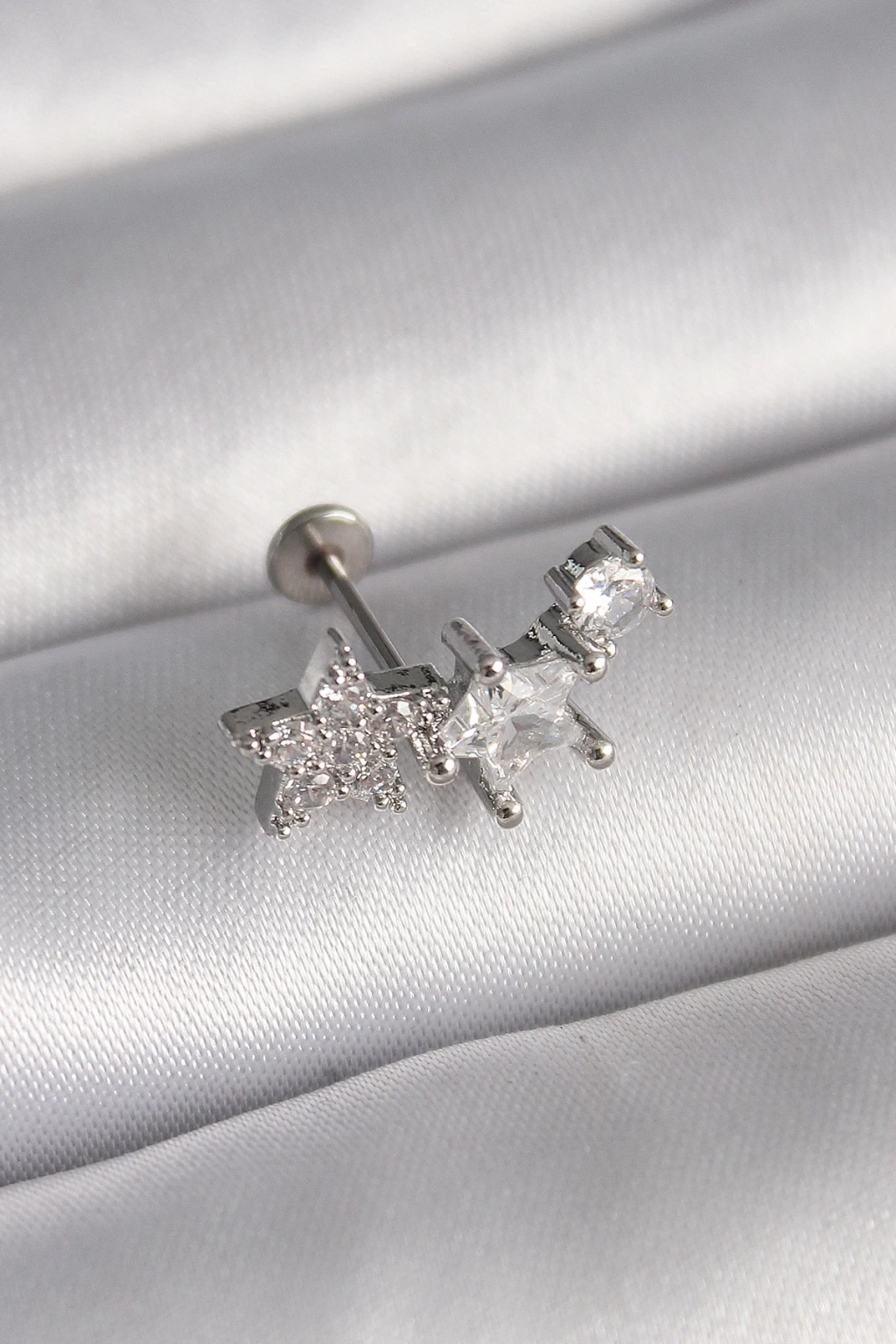 • 316L Çelik Gümüş Renk Zirkon Taşlı Yıldız Model Tragus Piercing