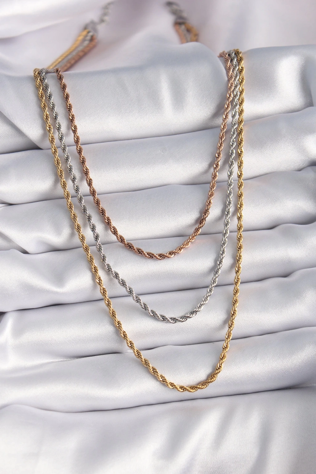 • 316L Çelik Mix Renk Burgu Zincir Model Kadın Kolye