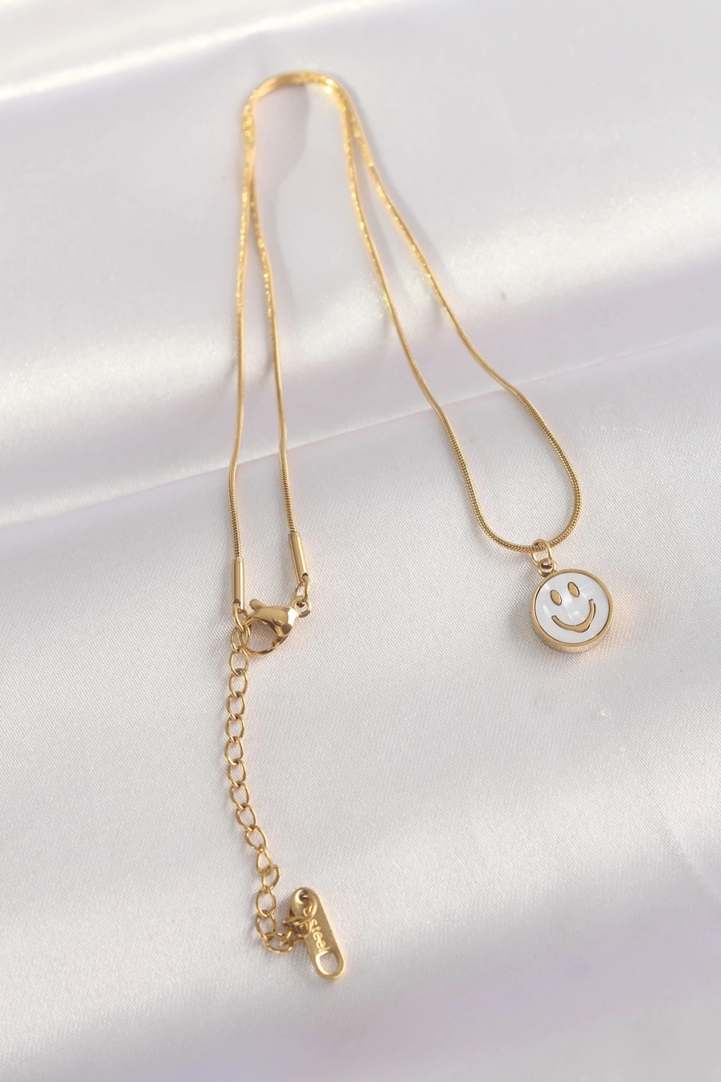 • 316L Çelik Zincir Altın Renk Mermer Desenli Minimal Smile Kolye