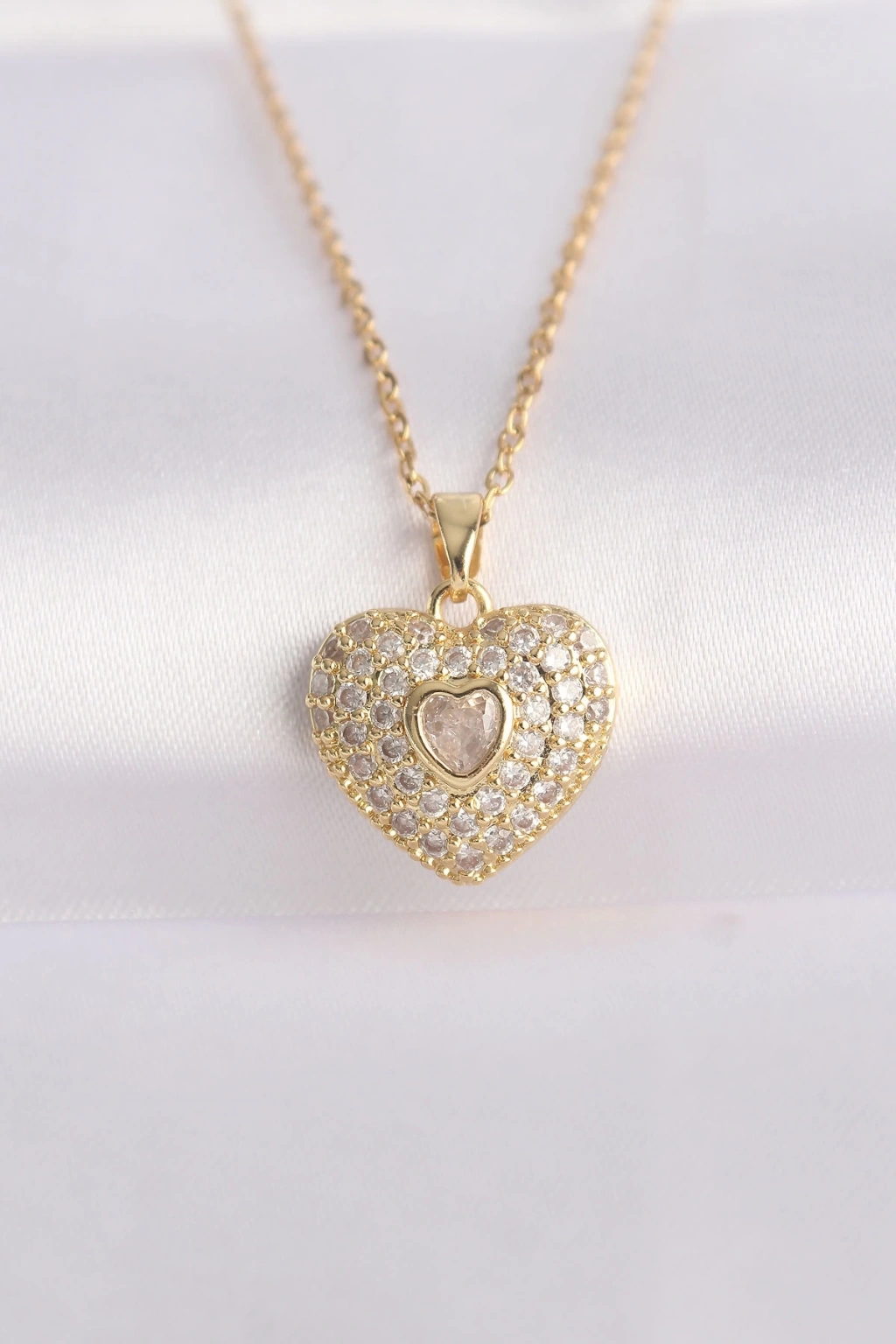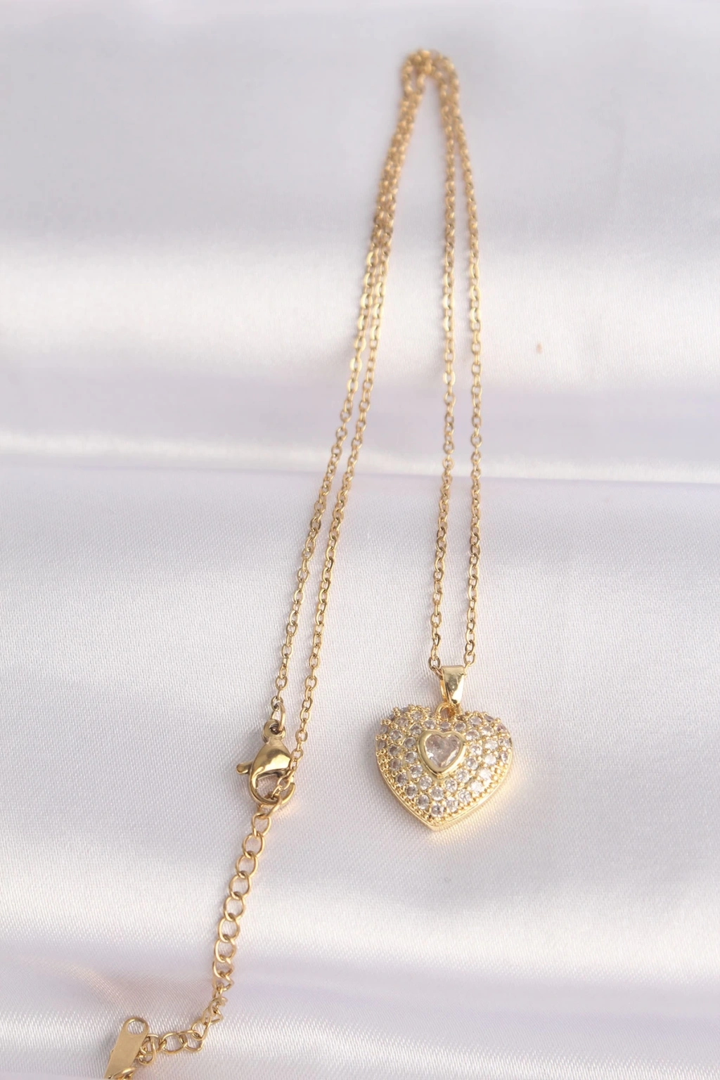 • 316L Çelik Zincir Altın Renk Zirkon Taşlı Kalp Kolye