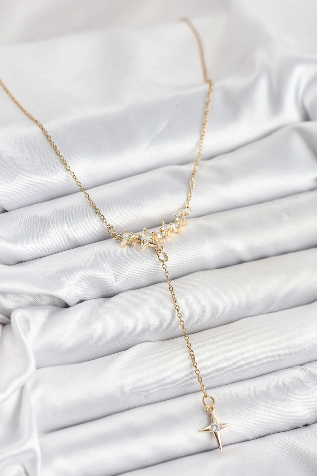 • 316L Çelik Zincir Gold Renk Yıldız Model Y Kadın Kolye