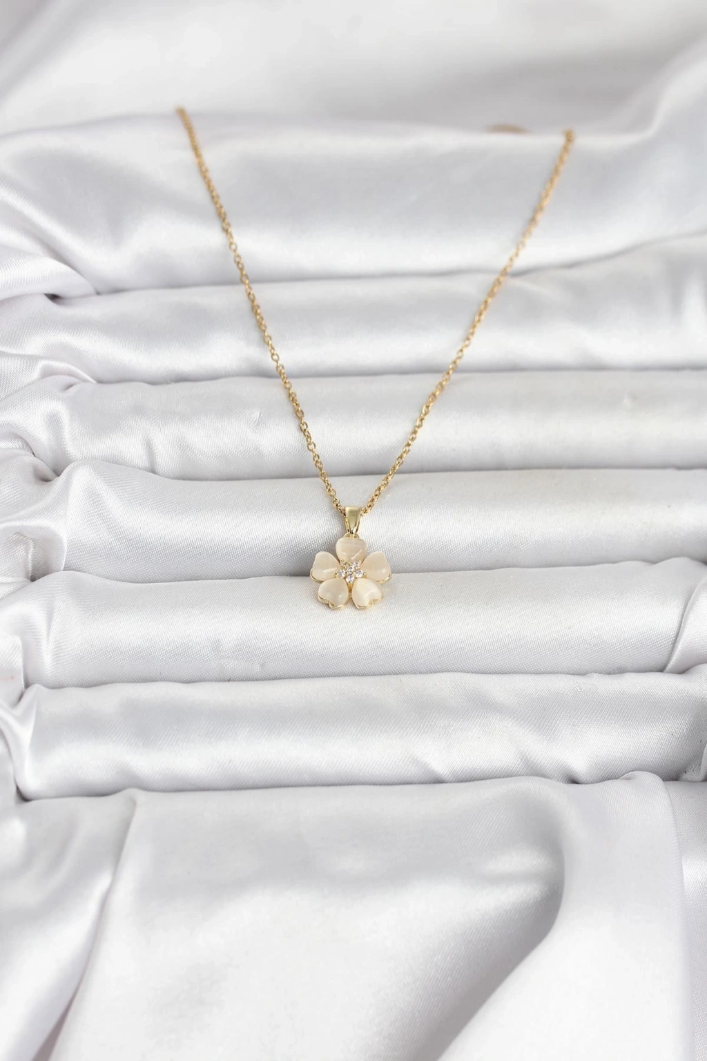 316L Çelik Zincir Gold Renk Yonca Model Kadın Kolye
