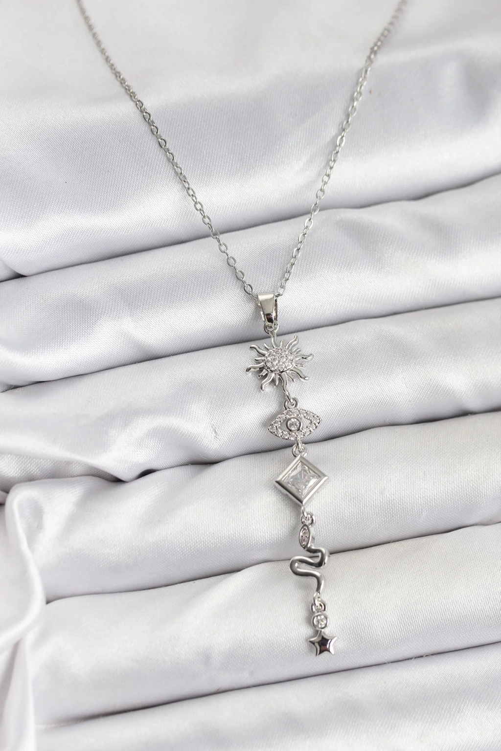 • 316L Çelik Zincir Gümüş Renk Güneş ve Enerji Model Kadın Y Kolye
