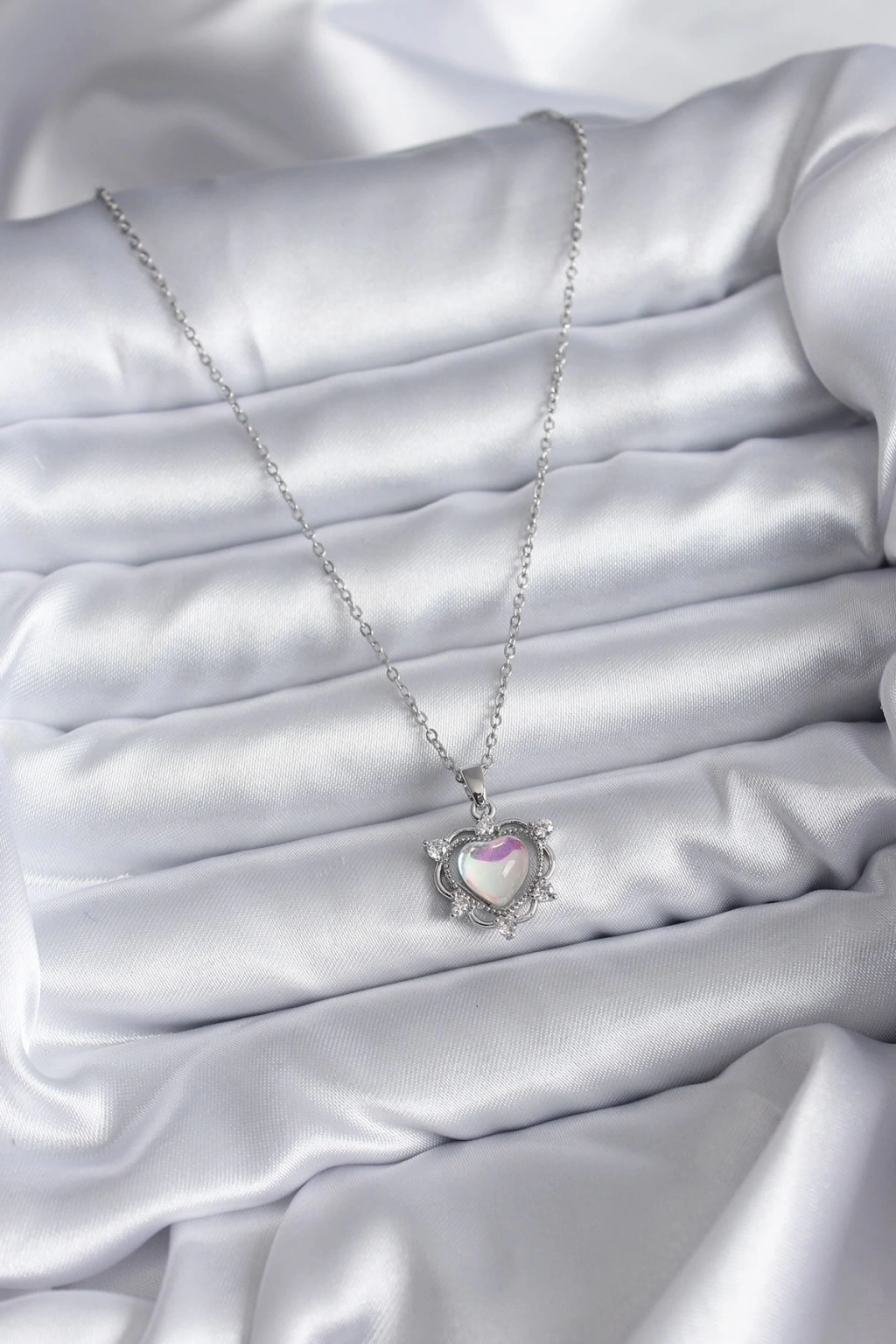 • 316L Çelik Zincir Gümüş Renk Kalp Model Kadın Kolye