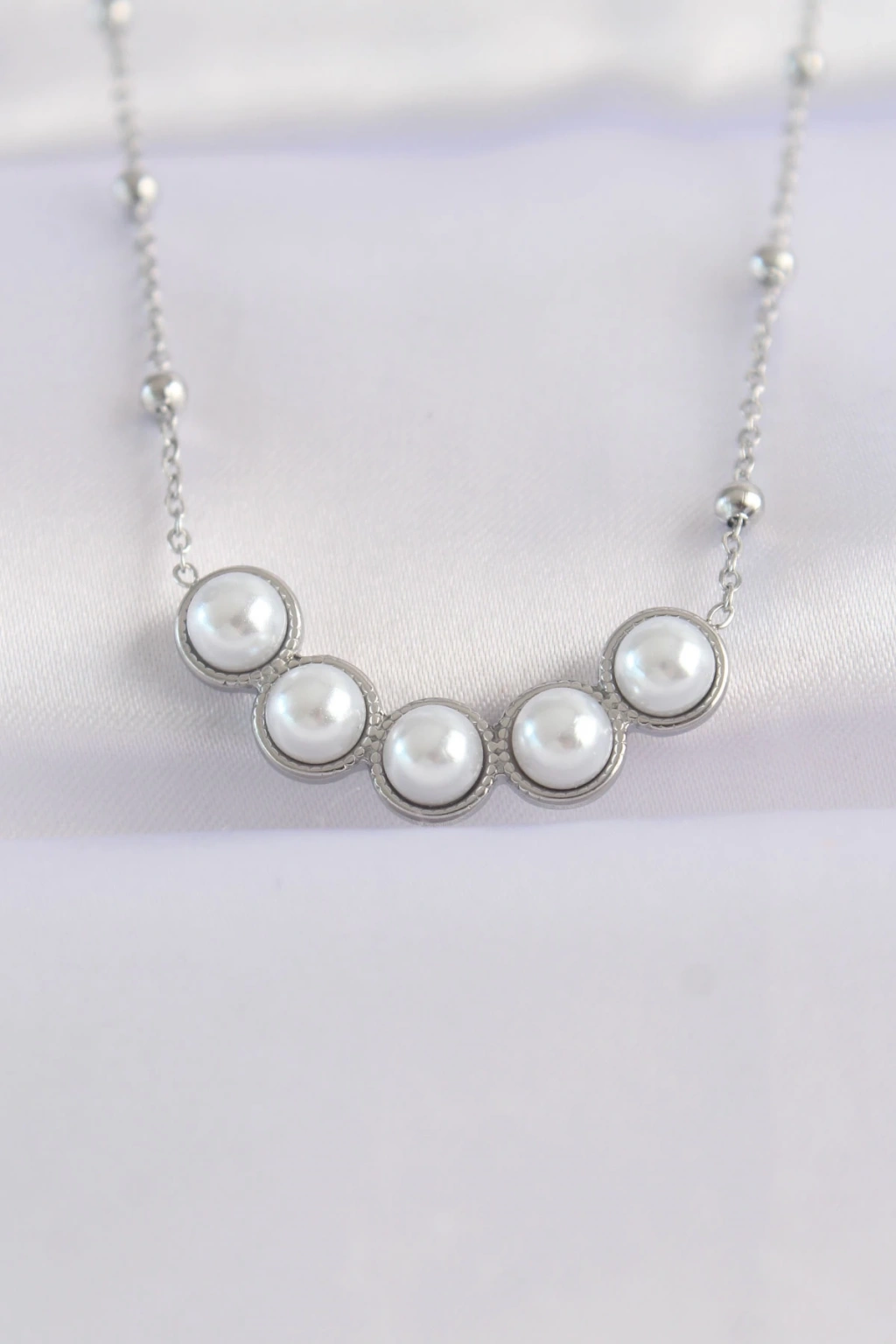 • 316L Çelik Zincir Gümüş Renk Sıralı İnci Taşlı Kolye