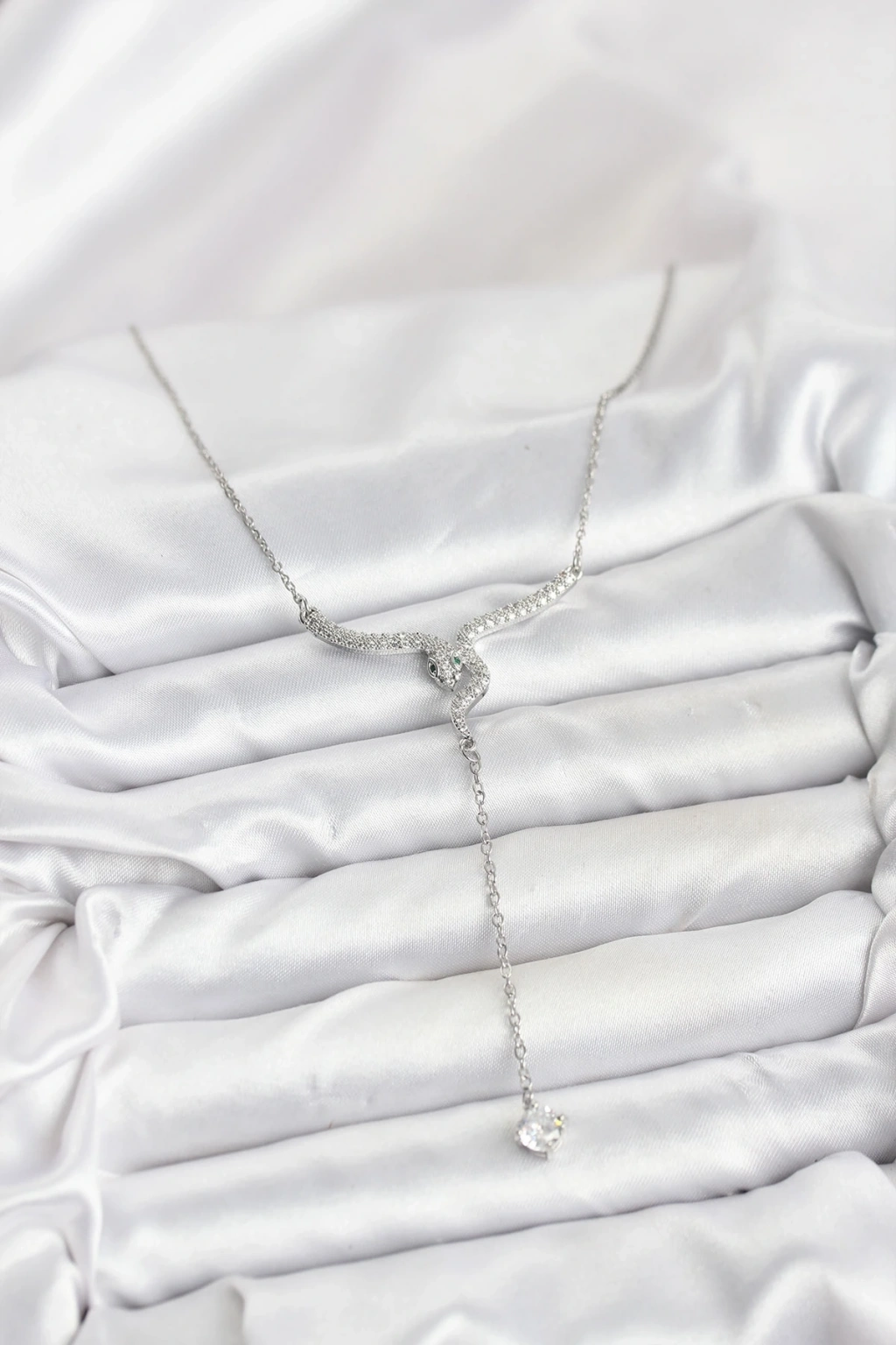 • 316L Çelik Zincir Gümüş Renk Yılan Model Y Kolye