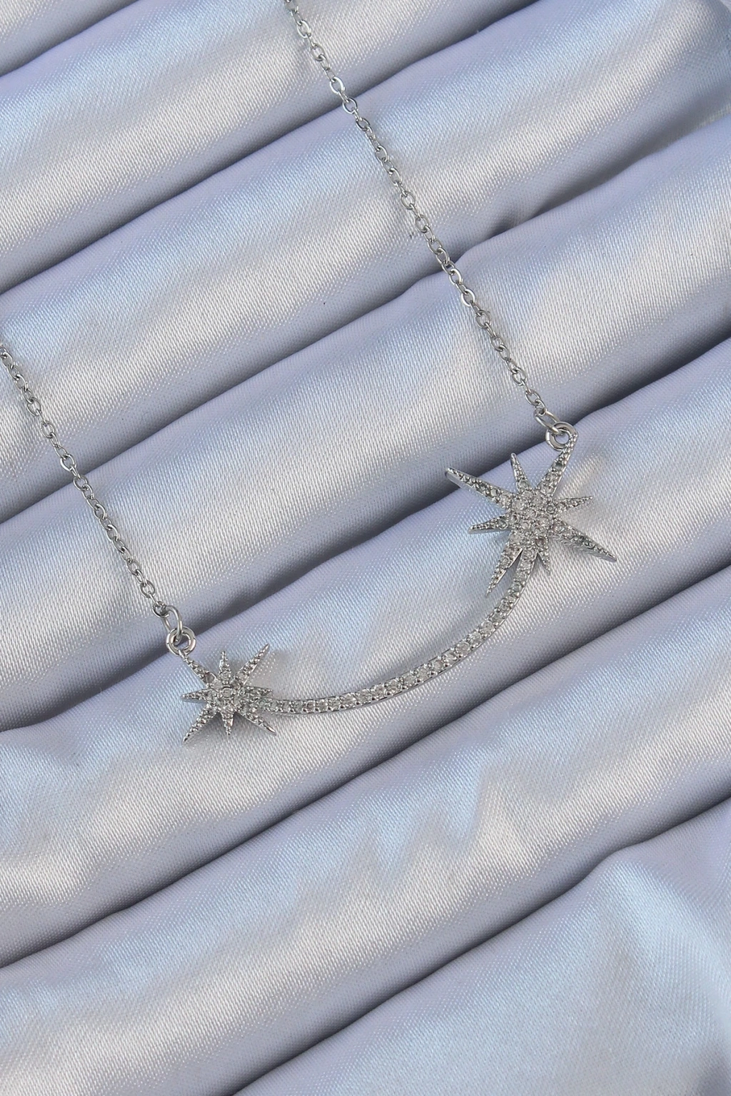 • 316L Çelik Zincir Gümüş Renk Zirkon Taşlı Kutup Yıldızı Kolye