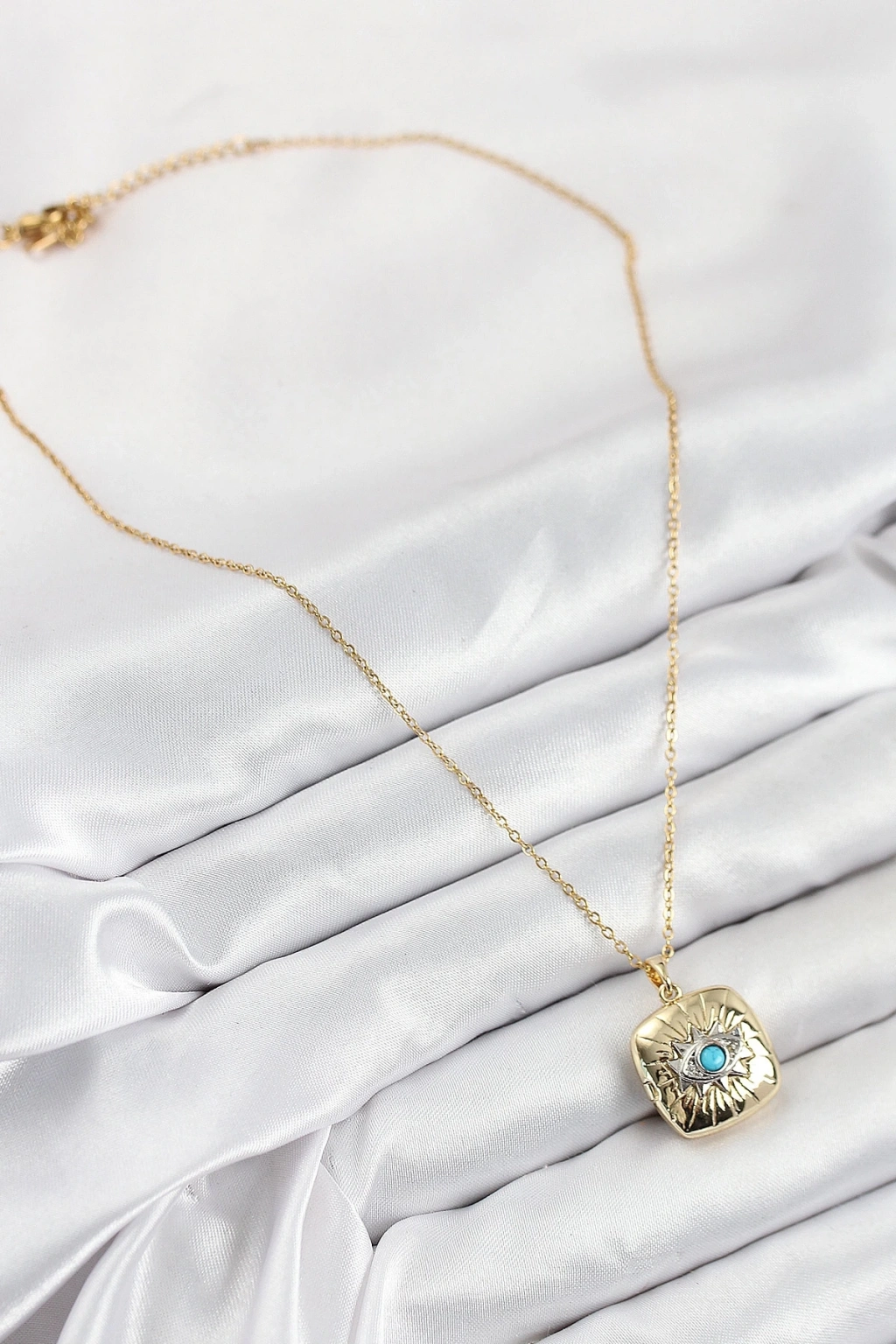 • 316L Çelik Zirkon Taşlı Açılabilr Kapaklı Göz Model Gold Renk Kadın Kolye