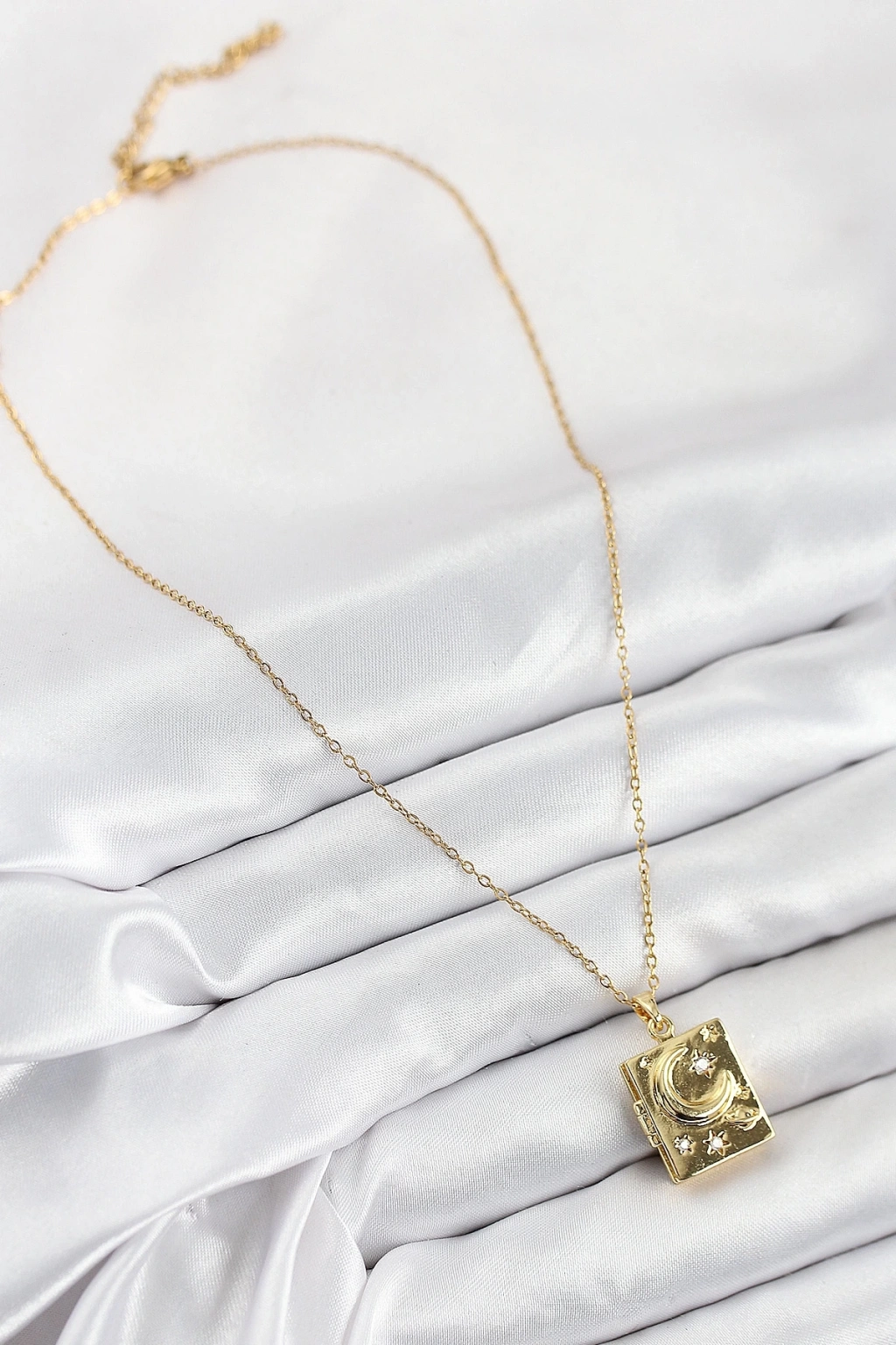 • 316L Çelik Zirkon Taşlı Açılabilr Kapaklı Kitap Model Gold Renk Kadın Kolye