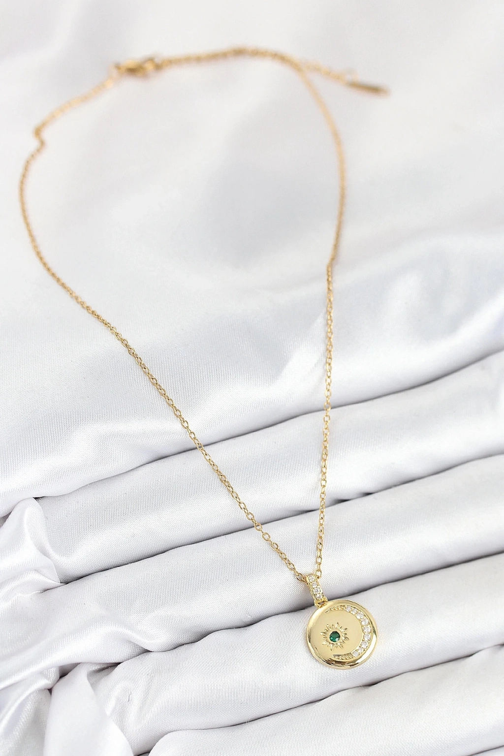• 316L Çelik Zirkon Taşlı Ay Ve Güneş Model Gold Renk Kadın Kolye