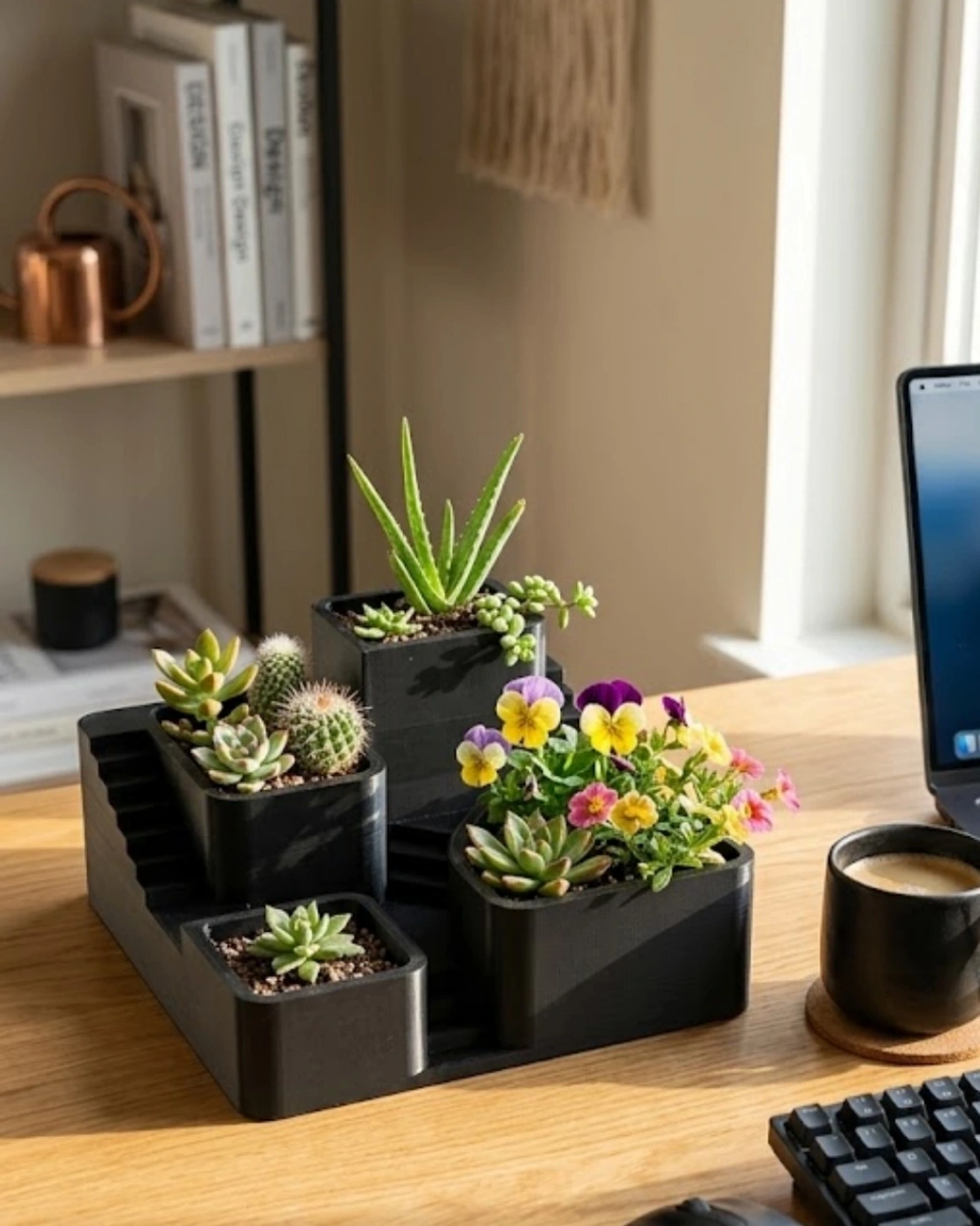 3D Baskı Kaktüs ve Sukulent Saksı Seti Çok Katlı Şık Ev Ofis Dekoru