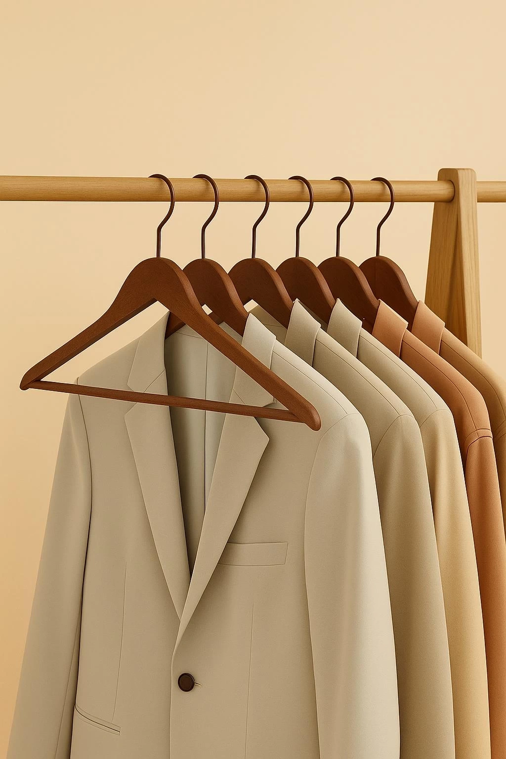 Doğal görünümüyle şıklık katan 6’lı ahşap görünümlü kahve askı seti, gardırobunuzda estetik bir düzen sağlar.