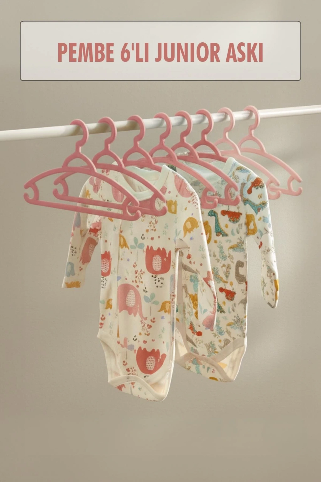Pembe renkli Junior Askı, bebek kıyafetlerinizi düzenlemenize yardımcı olur. Hafif ve sağlam yapısıyla bebek gardıropları için ideal bir çözümdür.