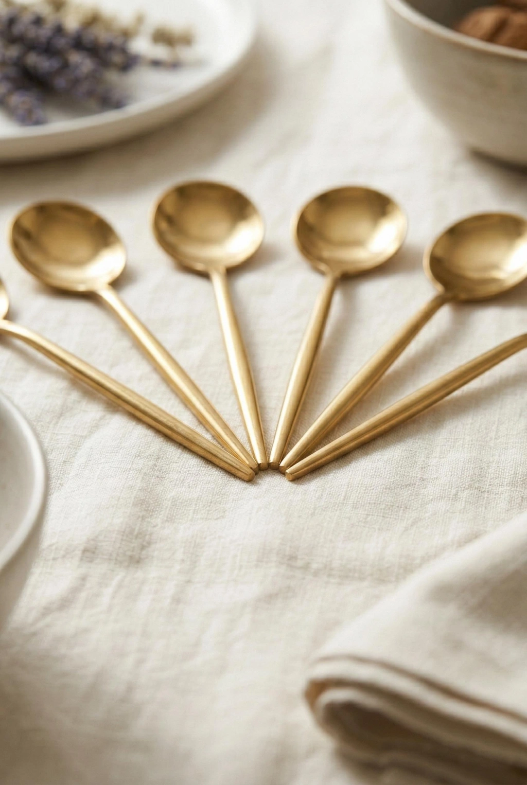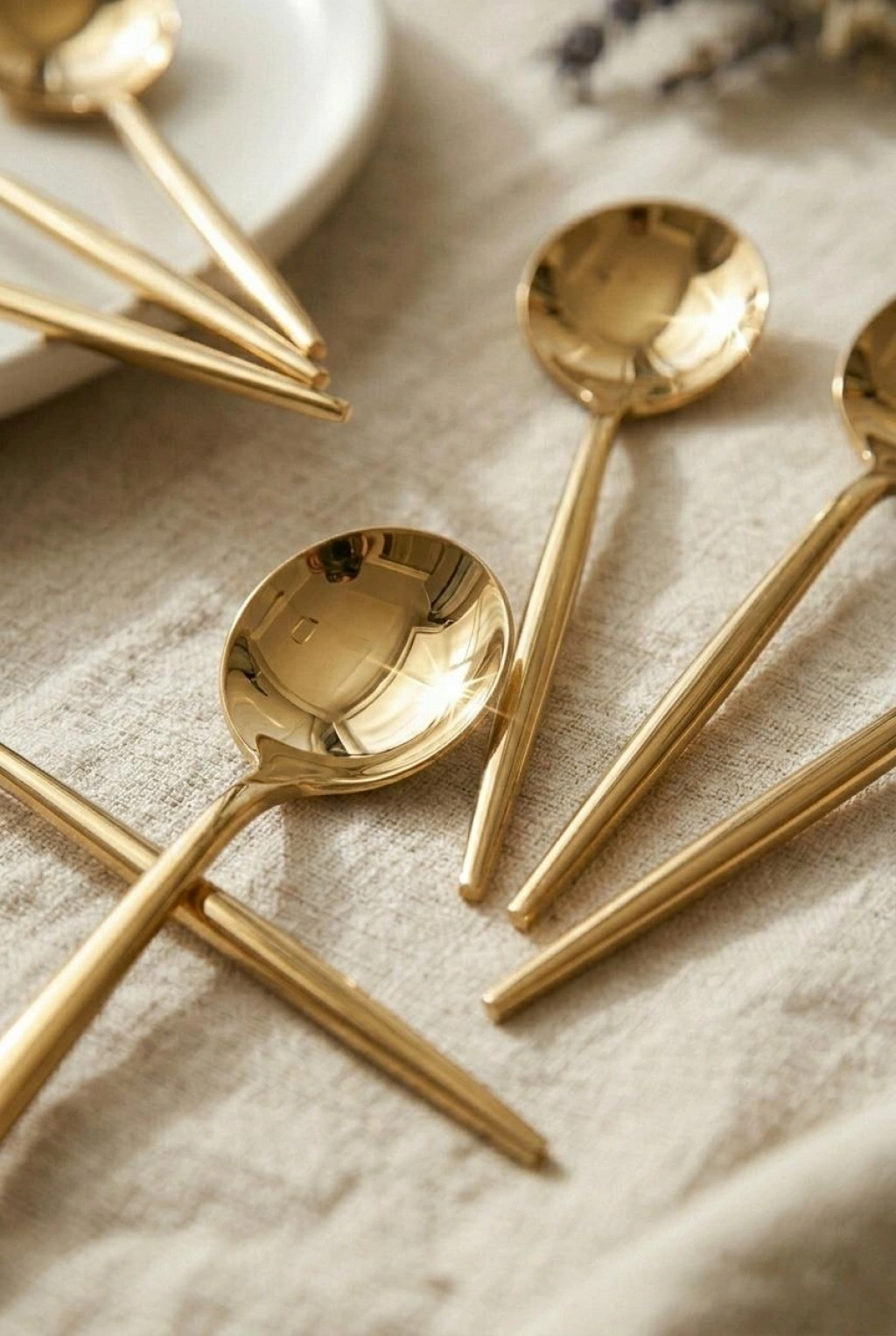 6'lı Lüks Gold Paslanmaz Çelik Çay Kaşığı Seti (13 cm)