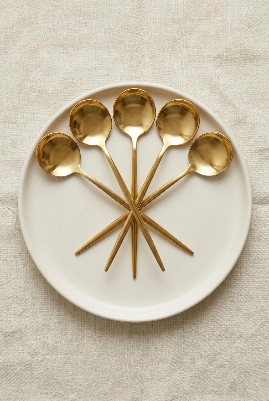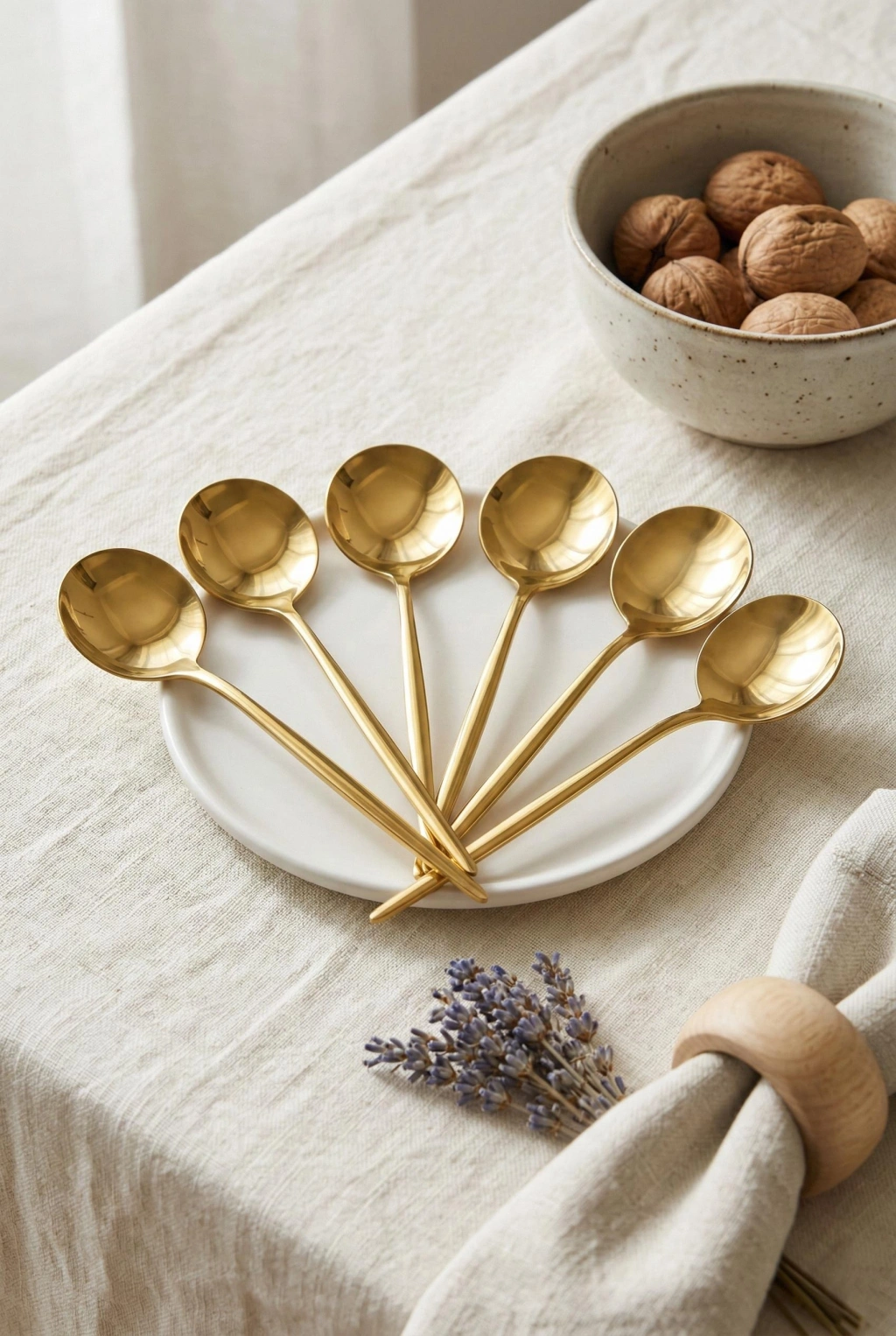6'lı Lüks Gold Paslanmaz Çelik Tatlı Kaşığı Seti (16 cm)