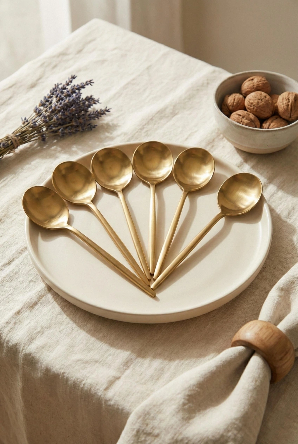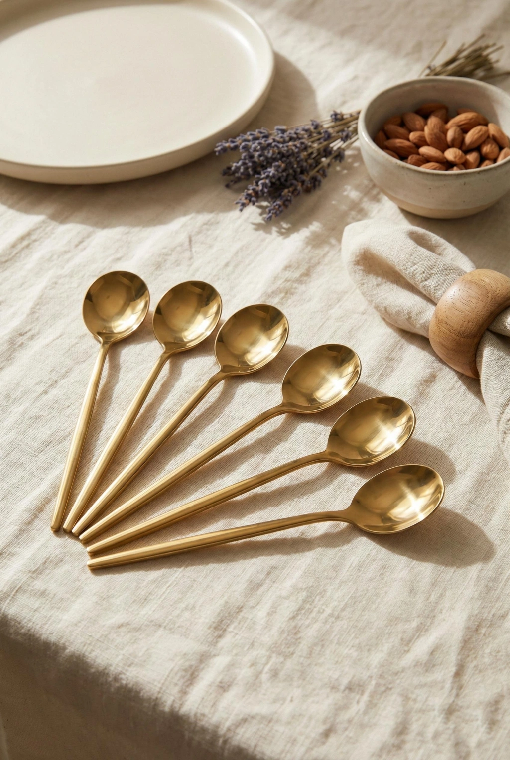 6'lı Lüks Gold Paslanmaz Çelik Yemek Kaşığı Seti (21 cm)