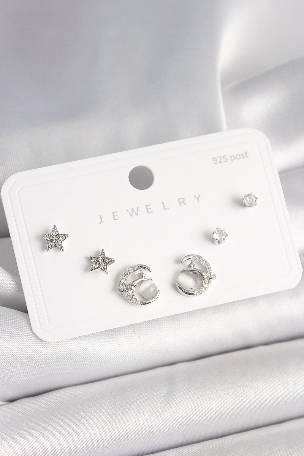 • 925 Ayar Gümüş Çivi Zirkon Taşlı Hilal Yıldız Model Kadın Küpe Seti