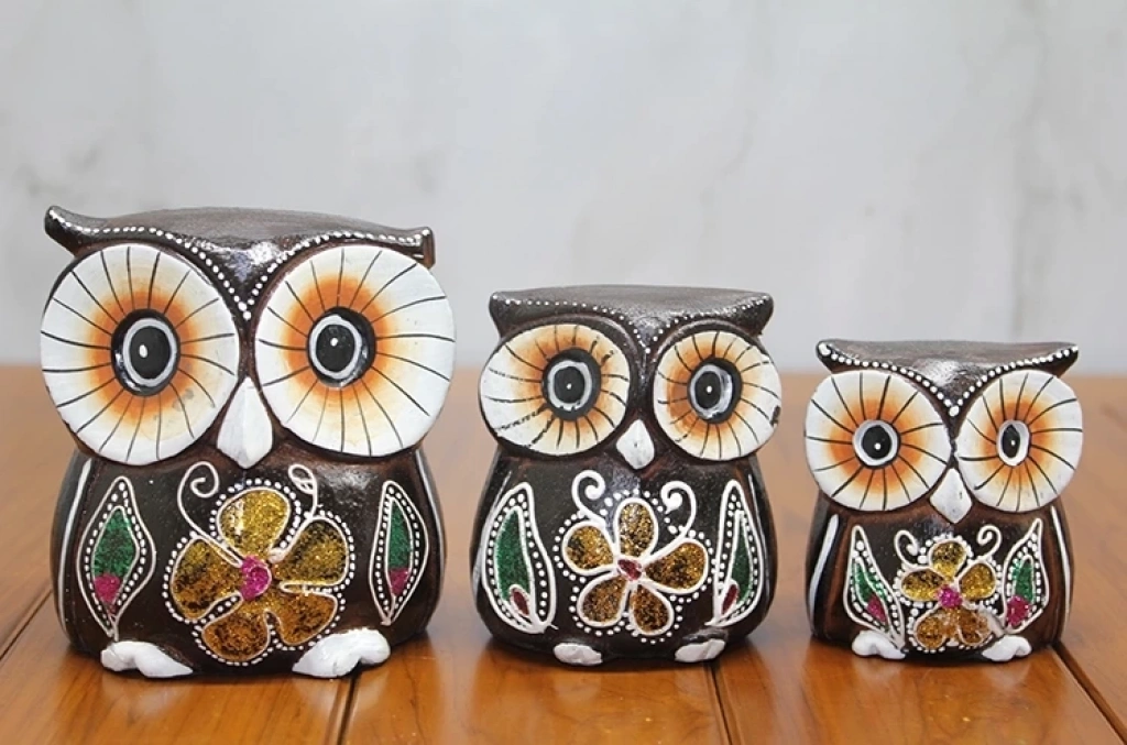• Ahşap 3'lü Baykuş Seti Polos:1