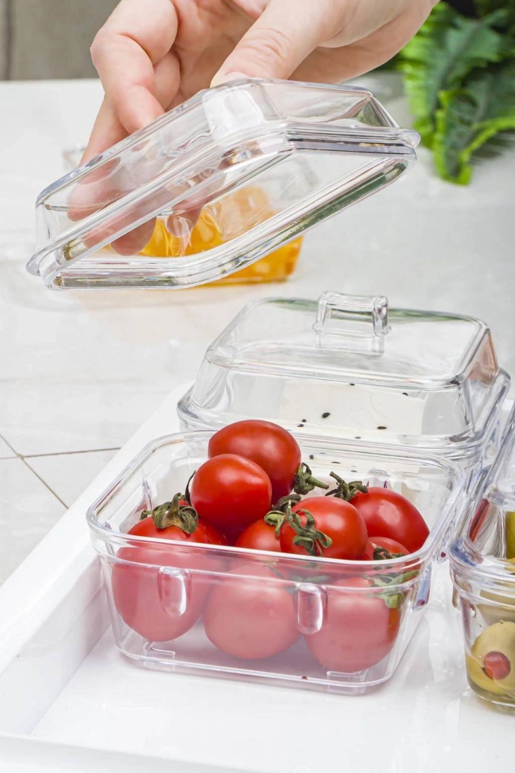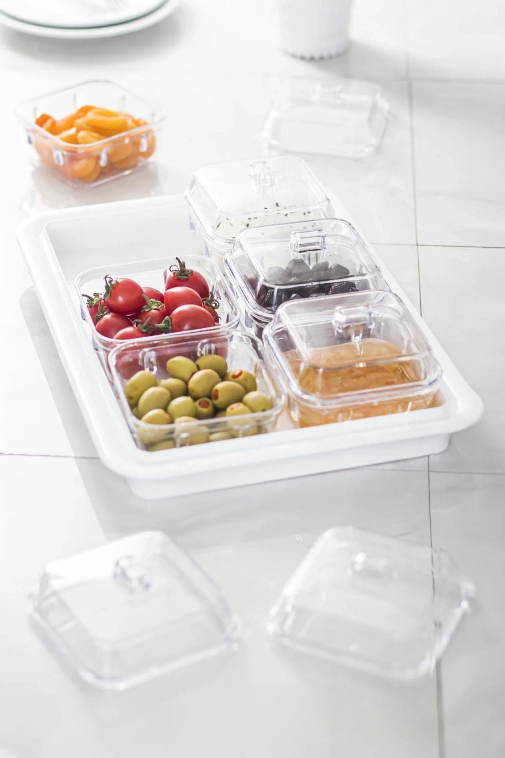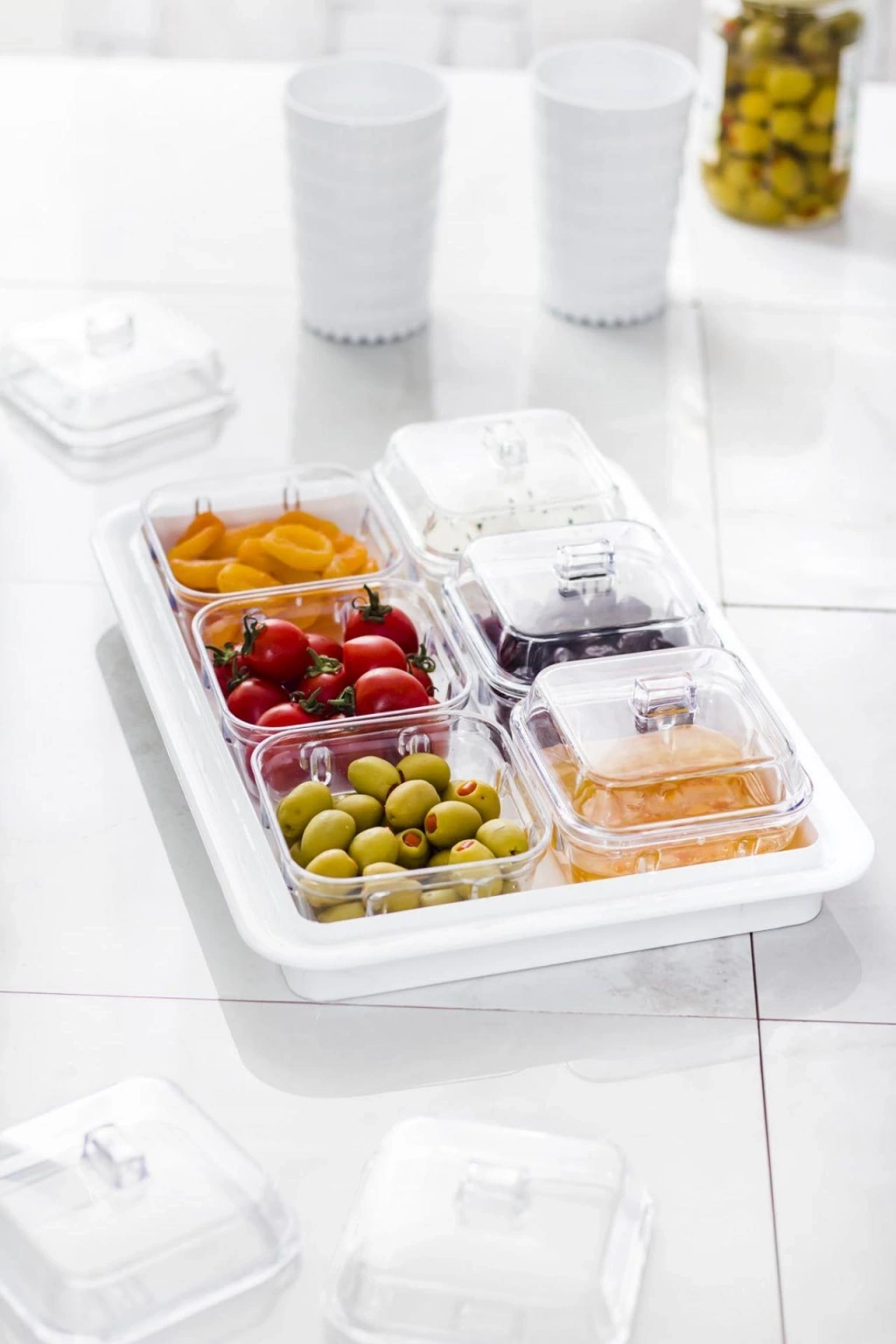 • Akrilik Beyaz 6’lı Kapaklı Kahvaltılık Kahvaltı Seti & Saklama Kabı (Cam Değildir)