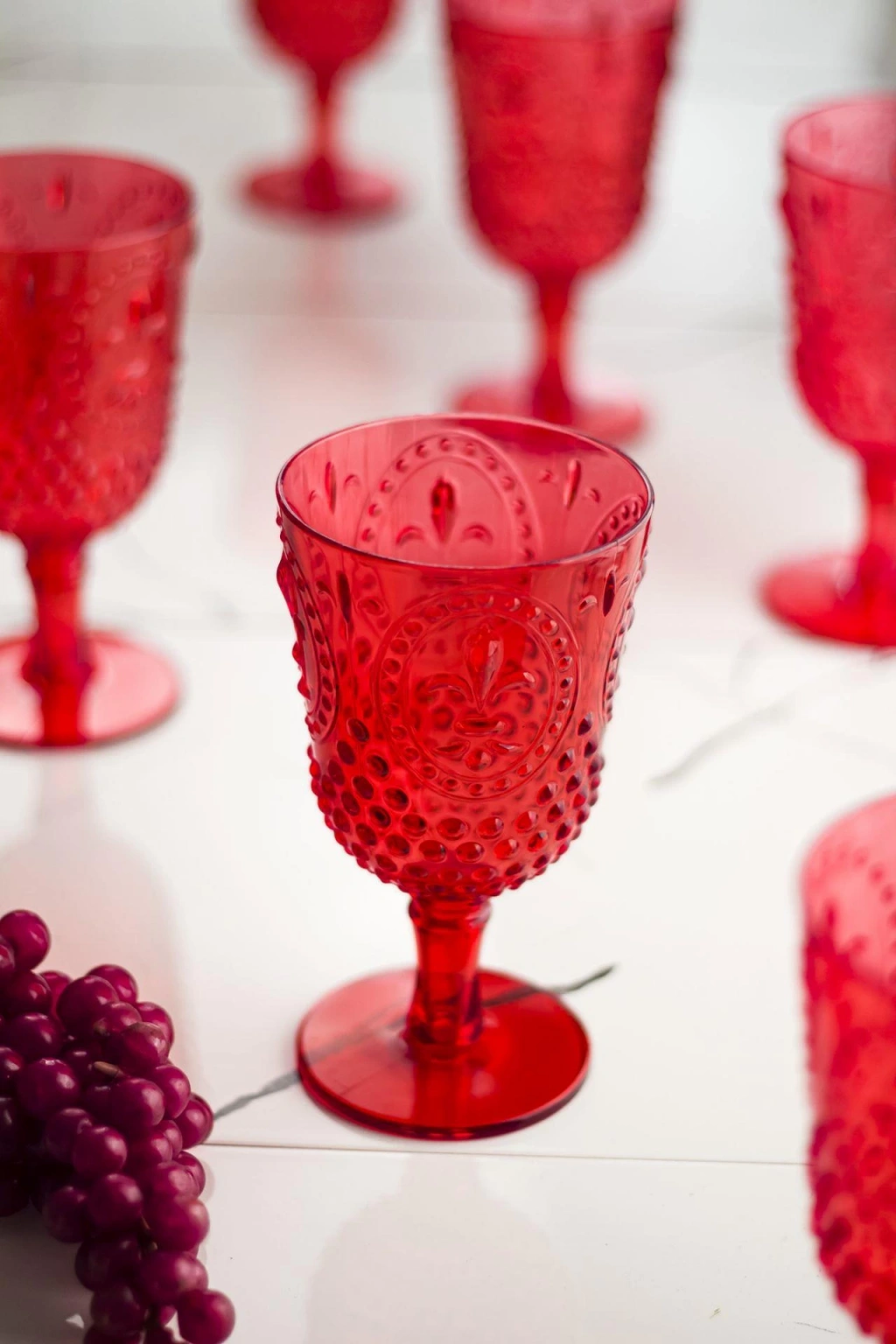 • Akrilik Kırmızı Tekli Kadeh & Su Meşrubat Kahve Yanı Bardağı 450 ml ( Cam Değildir )
