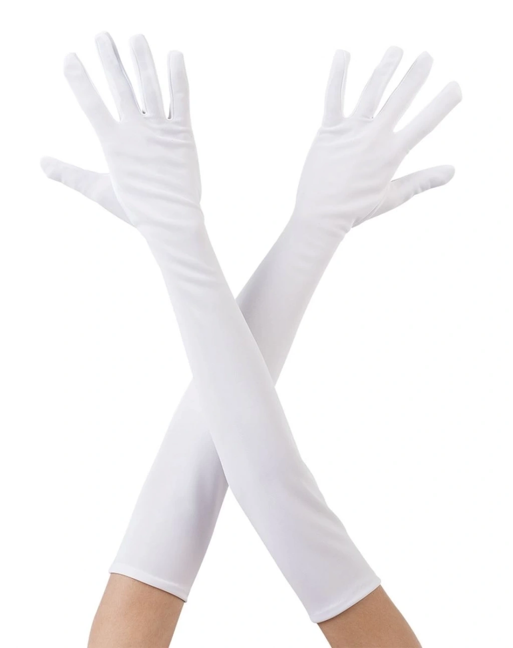 Beyaz Renk Dirseğe Kadar Uzun Kumaş Eldiven 40 Cm