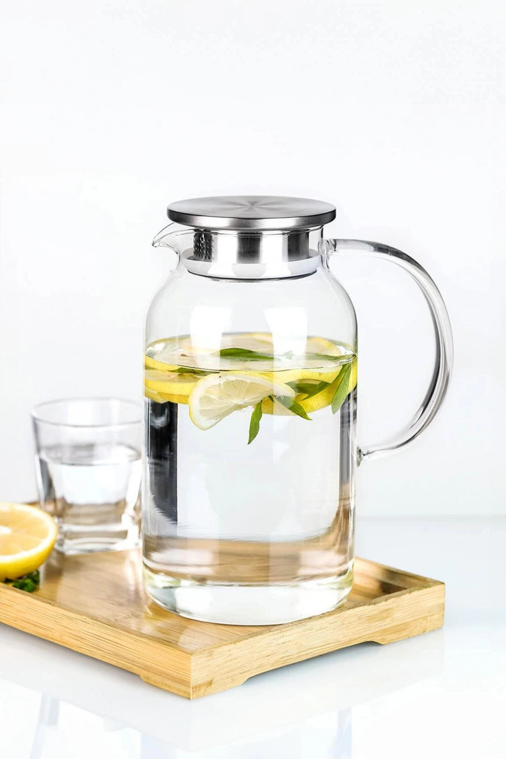 Şık metal kapaklı tasarımıyla sofralarınıza modern bir dokunuş katan bu borosilikat cam sürahi, hem dayanıklı hem de estetik bir sunum ürünüdür. Günlük kullanımdan özel davetlere kadar içecek sunumlarınızda vazgeçilmezdir.