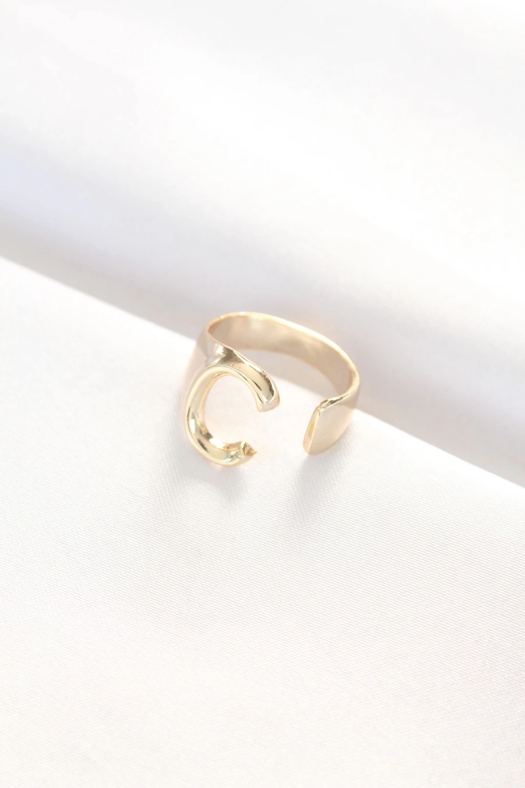 • C Harfli Altın Renk Ayarlanabilir Yüzük