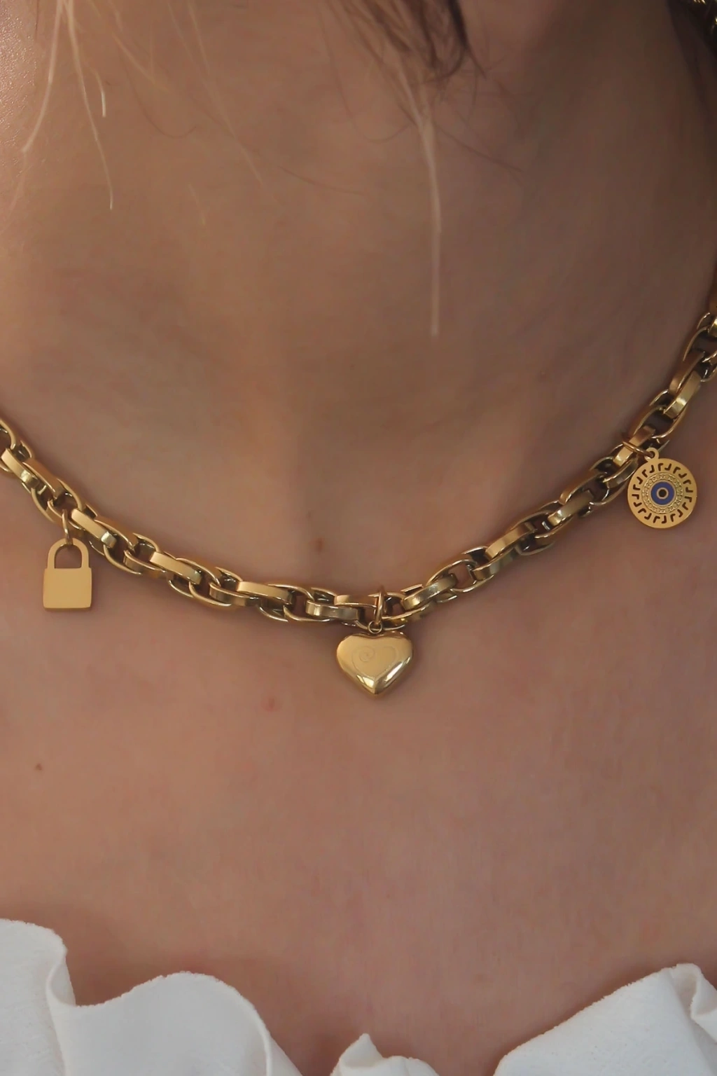 • Çelik Gold Renk Kalın Zincir Model Kalp Figür Kadın Kolye