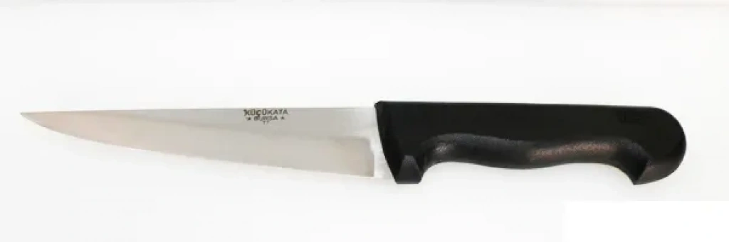 Küçükata Bursa Kalın Sivri Kasap Bıçağı No:3, 17 cm, Plastik Sap; et ve sert materyallerin kesiminde yüksek performans sağlayan, dayanıklı ve ergonomik bir mutfak aracıdır. Paslanmaz çelik bıçağı ve plastik sapı ile konforlu ve etkili bir kullanım sunar. Bu bıçak, kasaplık işlerinde ve mutfakta profesyonel bir yardımcıdır.